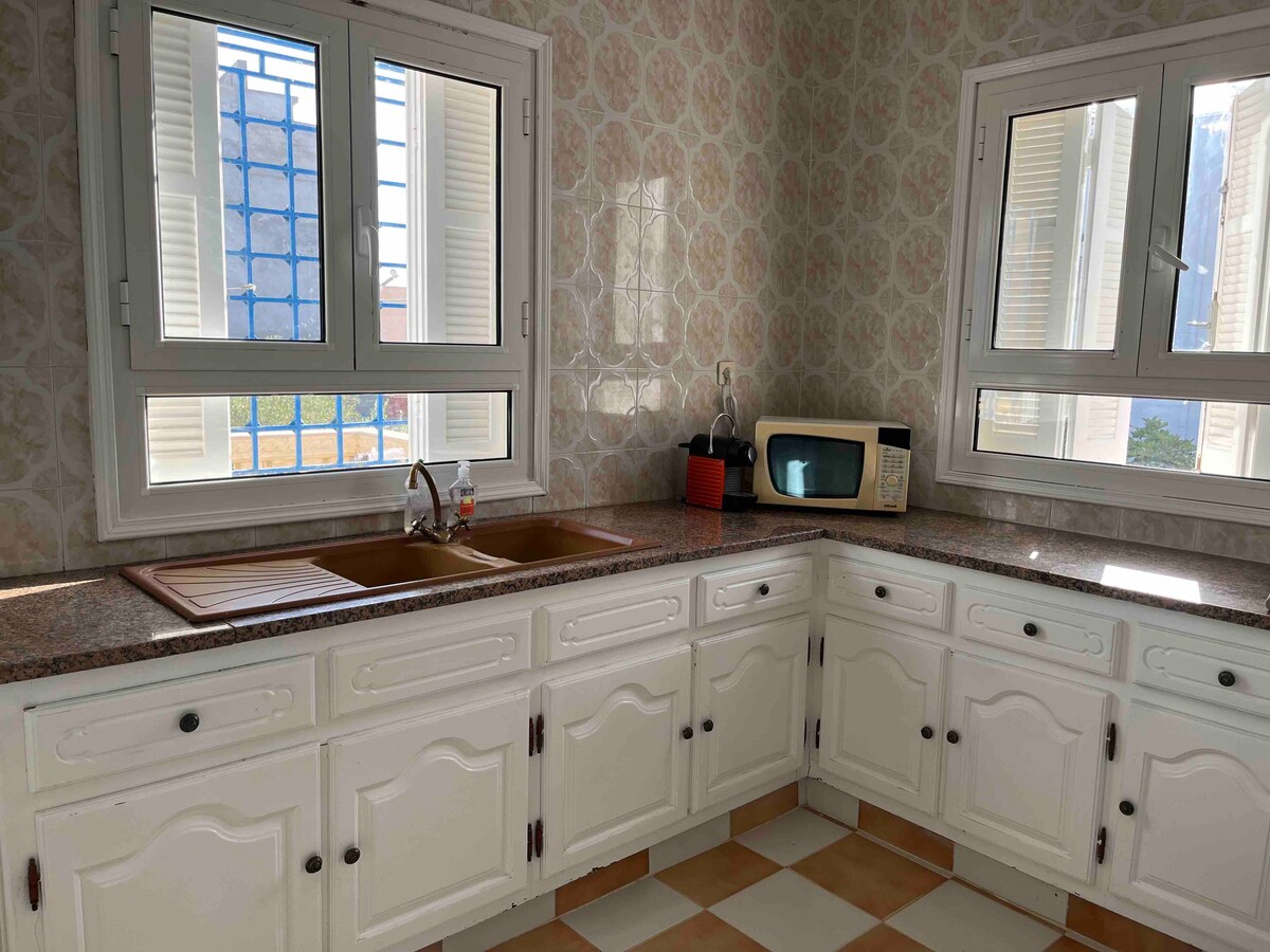 Menghadap laut. Dengan teres pemandangan menakjubkan. 2 bilik tidur, ruang tamu, bilik mandi dan dapur. Salakta adalah bandar popular di Tunisia, bandar yang sederhana dan indah untuk orang yang tidak suka kerumitan. ideal untuk keluarga sehingga 6 orang dewasa dan kanak-kanak. aktiviti kolam renang muzium mendaki memancing lawatan permainan pantai.