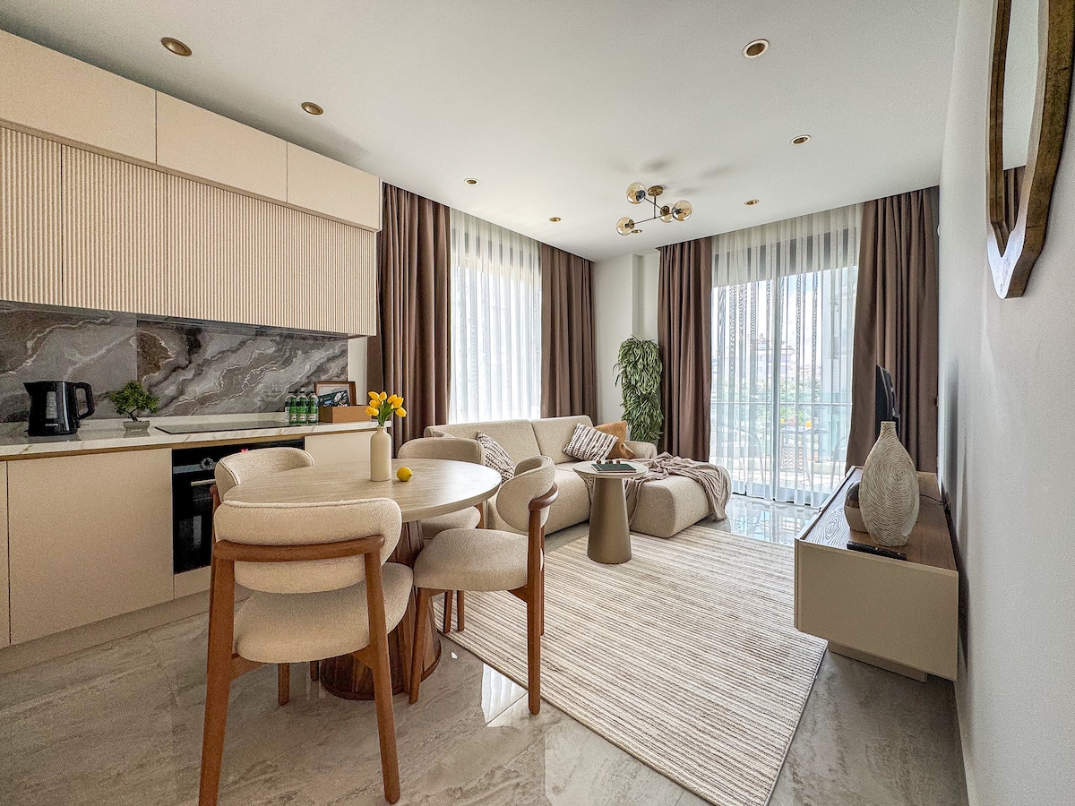 ☀️ 👪🏖️ Alami penginapan mewah di apartmen 102m² dengan pemandangan Laut Mediterranean yang menakjubkan. Ruang berperabot lengkap ini termasuk ruang tamu, dapur, dua bilik tidur, dua bilik mandi, dan balkoni untuk menikmati matahari terbenam yang menakjubkan. Terletak di kompleks 5 bintang, anda mempunyai akses kepada kolam renang dalaman/luaran, gelanggang tenis/bola sepak, gimnasium, spa, dan pantai persendirian. Sesuai untuk keluarga dan rakan ⭐️⭐️⭐️⭐️⭐️