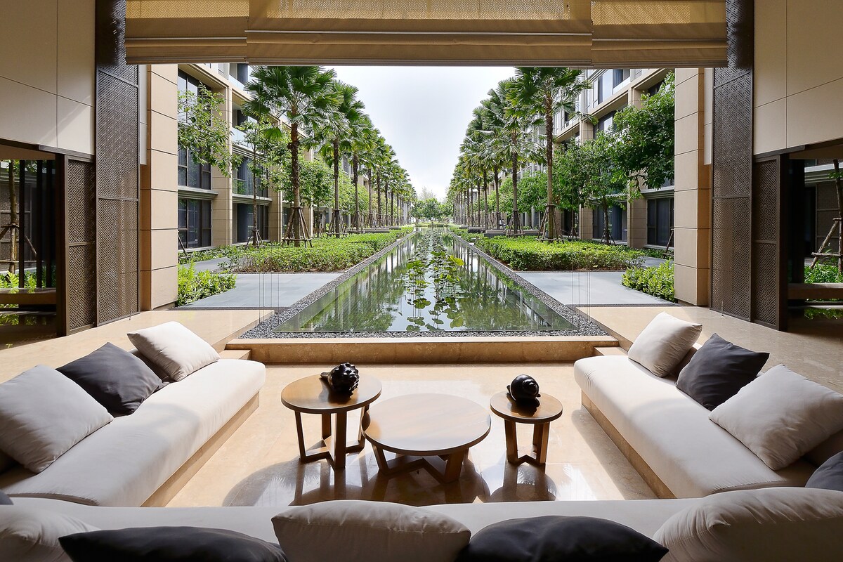 Selamat datang ke apartmen tingkat 5 kami dengan balkoni yang menghadap kolam renang, taman dan sisi laut. Apartmen dua bilik tidur & dua bilik mandi kami yang damai boleh menampung sehingga 5 orang (orang ke-5 adalah kanak-kanak yang tidur di atas katil sofa/katil bayi) sama ada untuk riadah, penginapan jangka panjang atau kerja jarak jauh. Apartmen ini merupakan sebahagian daripada resort kondominium Baan Mai Khao yang mewah oleh Sansiri dengan 7 kolam renang, lounge, gimnasium dan lokasi terus di tepi pantai. Harga termasuk elektrik, air paip & wifi.