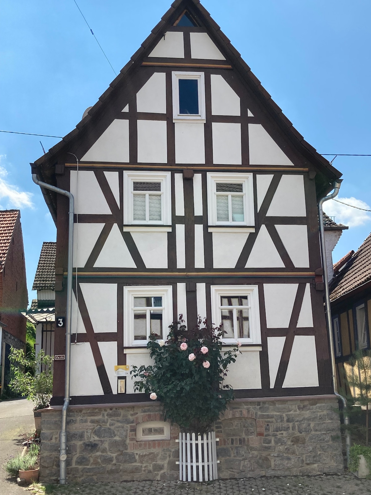 Wir sind 2016 aus der Stadt auf einen alten Bauernhof gezogen und leben hier gemeinsam mit unserem Hund Dago und drei Katzen inmitten von Schwarzenfels, einer Gemeinde der Stadt Sinntal, unterhalb der wunderschönen Burg Schwarzenfels. Wir renovieren den Bauernhof nach und nach, 2020 ist unser Projekt "Ferienhaus" fertig geworden und wir freuen uns auf unsere Gäste.