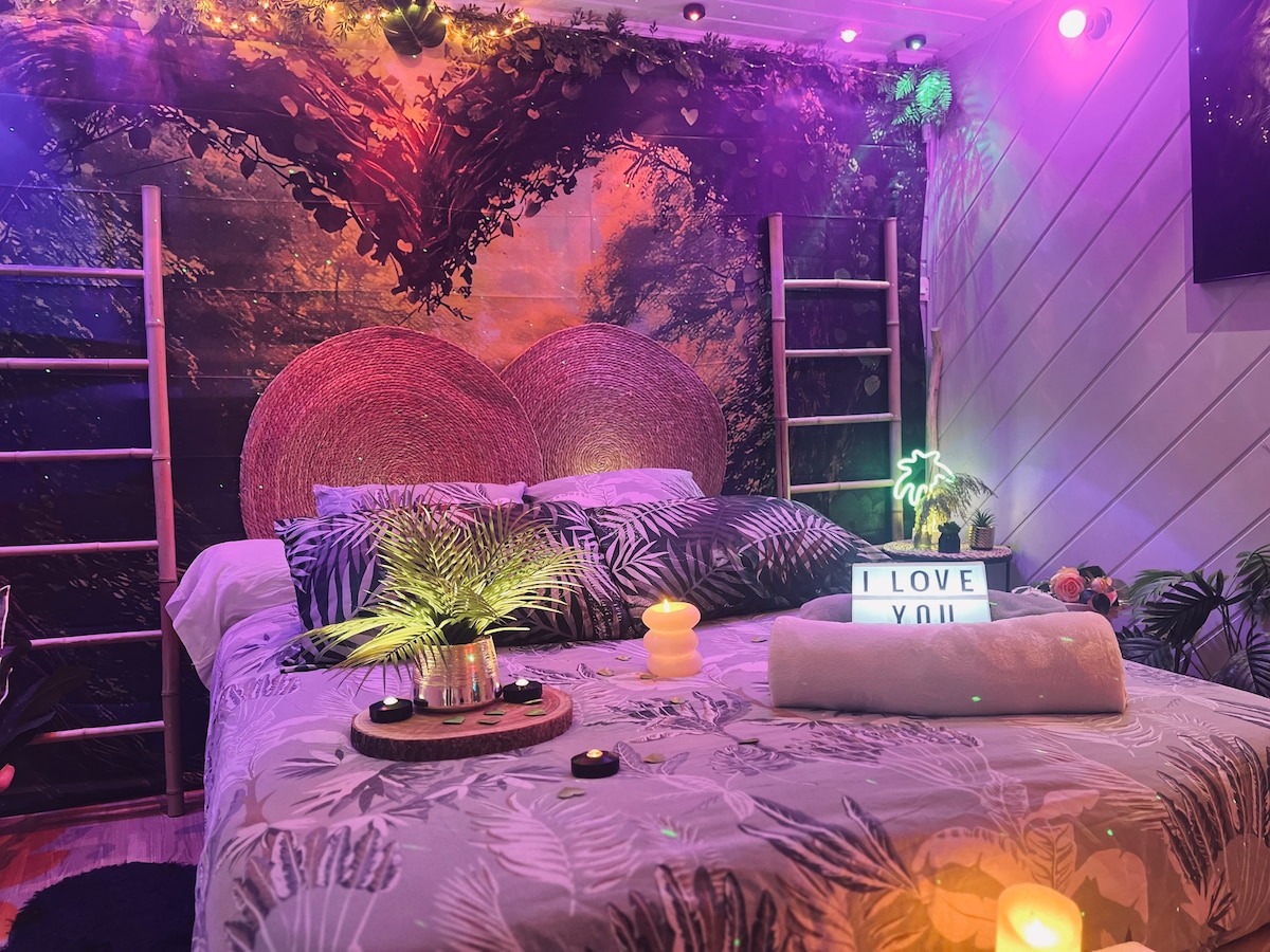✨ Terokai Mirage Tropical, tempat yang indah di tebing Loire 🌴. Nikmati tab mandi air panas persendirian, teres bergaya dan kawasan hutan eksotik untuk berehat. Bersenang-senang dengan permainan dart, berkongsi aperitif eksotik, atau berehat dalam suasana yang unik. Pada waktu malam, bilik ini diterangi dengan warna-warna yang memukau untuk mencipta suasana yang bergaya dan romantik💖. Di sini, setiap butiran menyublimkan penginapan anda untuk mencipta kenangan yang tidak dapat dilupakan.🌴❤️❤️💕💕💕👄🫂❤️