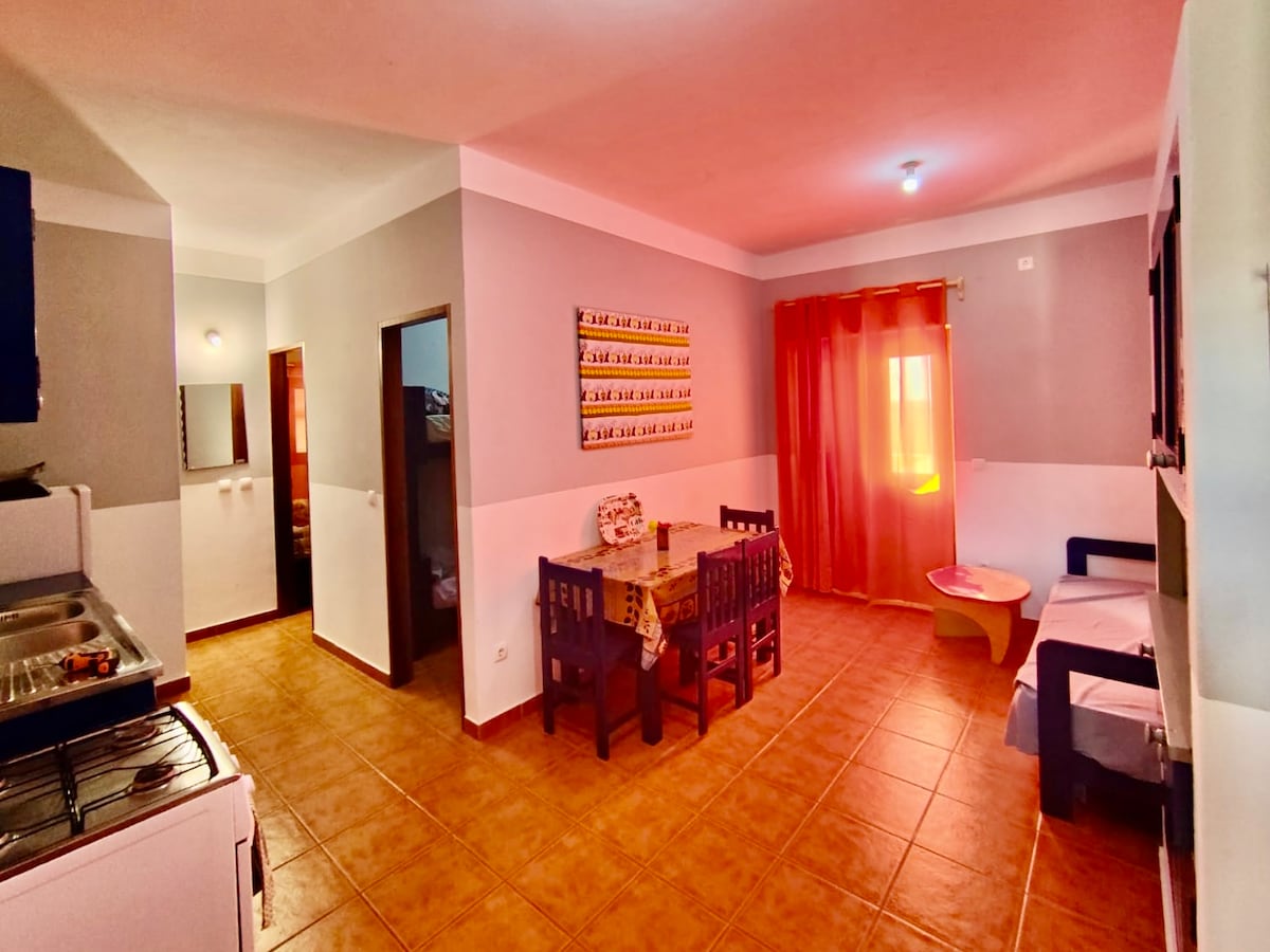Bersantai dan segarkan diri di oasis yang tenang ini. Pulau Maio menawarkan pantai yang sangat panjang dan liar. Suite kami terletak di kawasan yang tenang, tetapi mudah untuk semua kemudahan. apartmen ini dilengkapi dengan segala yang anda perlukan untuk percutian Tanpa Tekanan. Ia sangat dekat dengan pantai Ponta Preta yang megah di mana 10 km pasir liar dan putih akan memikat anda dengan keindahannya. 15 minit dari sini anda boleh melawat pusat bandar kecil, dan segala-galanya dengan selesa berjalan kaki.