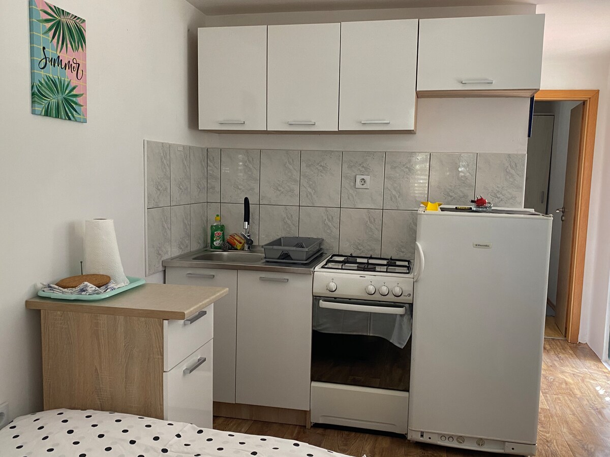 Banglo kami terletak hanya 2 km dari lapangan terbang! Banglo kami mempunyai 1 bilik tidur dengan katil double, almari pakaian. Ruang tamu dengan katil sofa, TV, penyaman udara, internet, dapur, bilik mandi dengan pancuran mandi. Di luar terdapat ruang hijau dengan taman, meja dan kerusi, barbeku, tempat letak kereta. Jarak ke pantai 700 m, ke bandar Trogir 6 km dan ke bandar Split 15 km. Jarak ke pasar raya Plodine ialah 100m dan ia mempunyai bar kafe, kedai roti dan makanan siap sedia