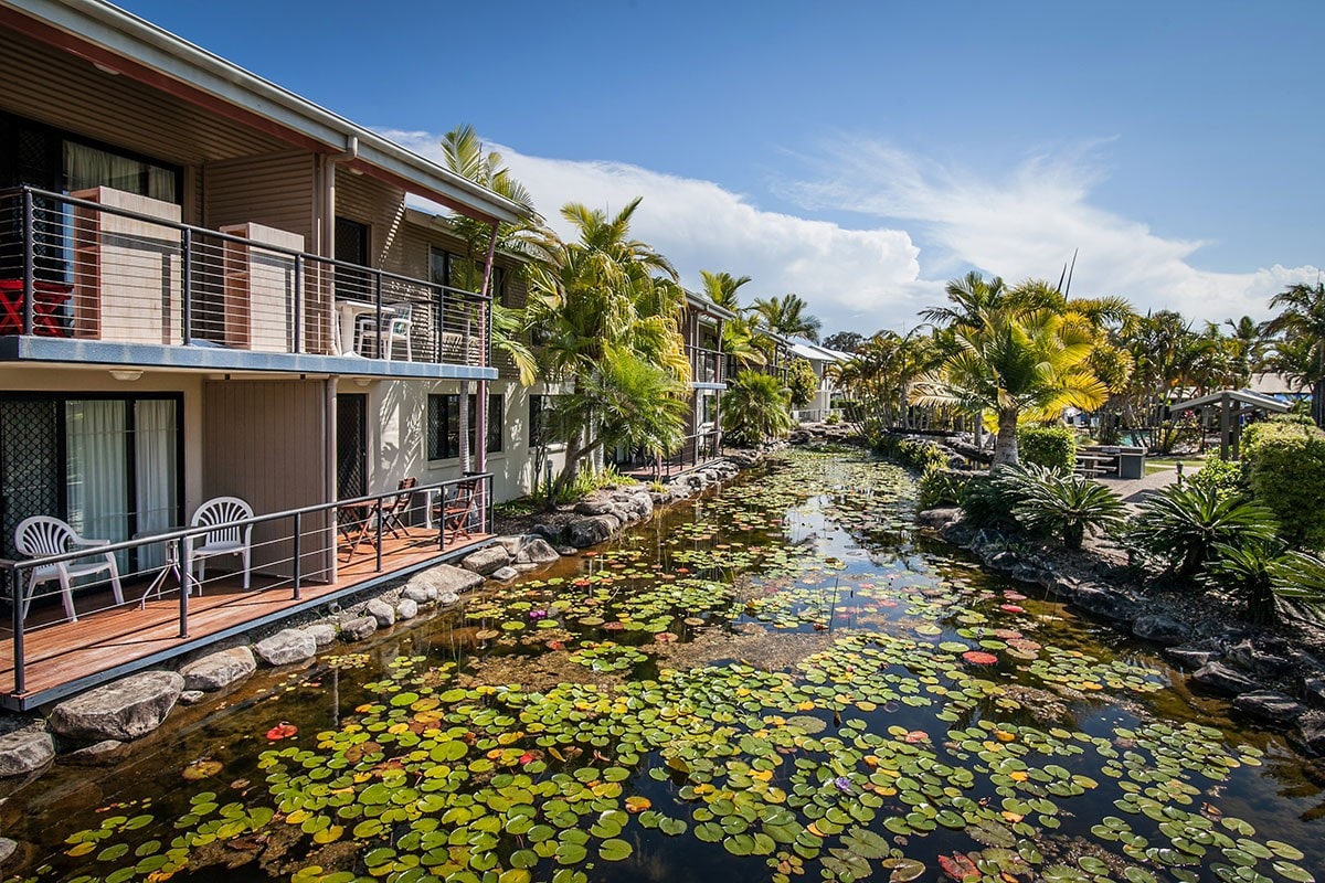 Fresh, bright, holiday Studio space overlooking the 3 largest lagoon pools in Noosa. Located on the Noosa's beautiful river. An ideal location, directly opposite the Noosa Marina/Ferry, short drive to Hastings Street/Noosa Main Beach/Noosa Heads (10 min). Bus stop at the front of the resort. Unwind and relax on your deck or in the Resort tropical gardens and pools space, after a day exploring. Complementary champagne and fresh bread. Perfect for 1 couple or single travelers.
