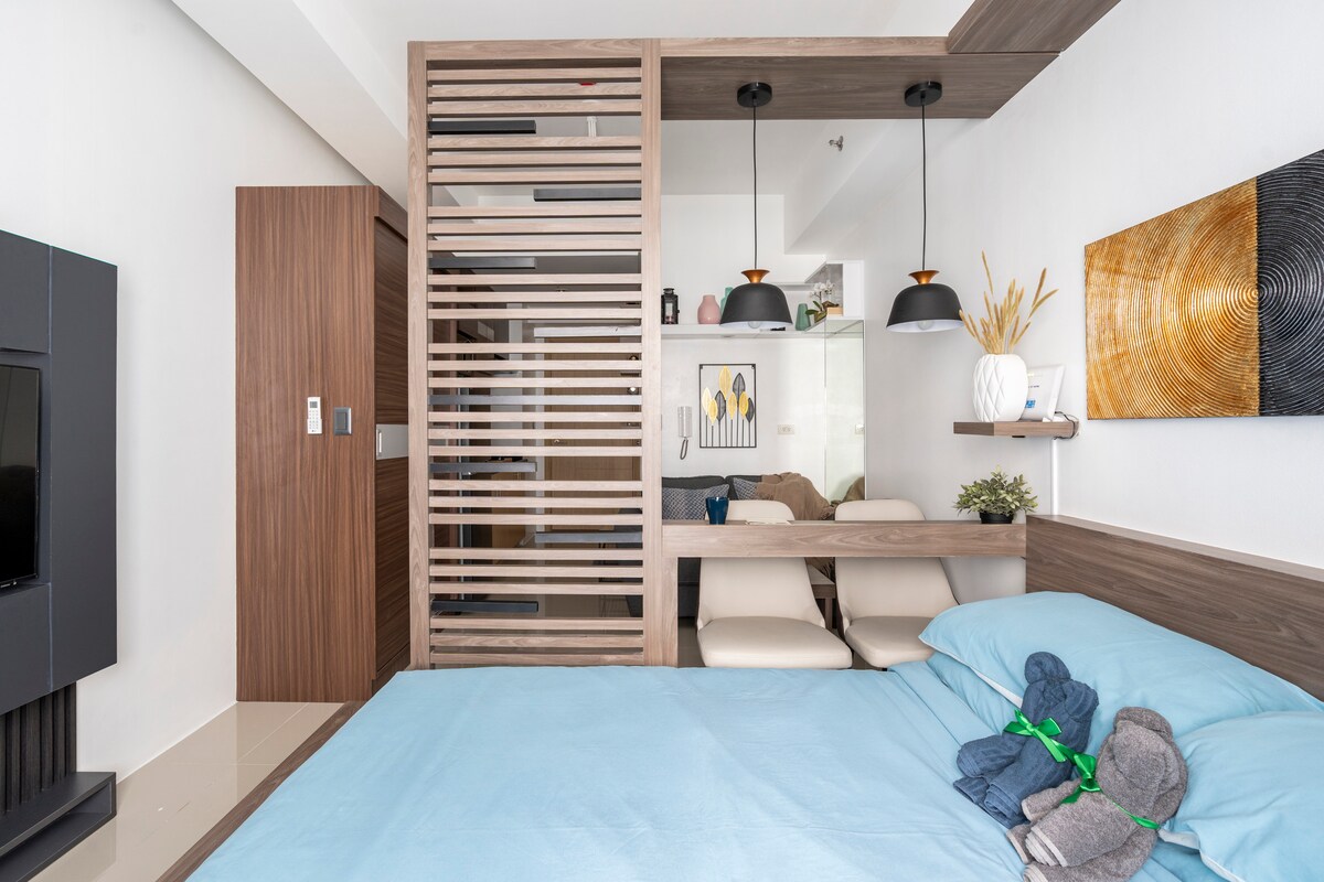 Terokai unit hujung 1BR kami yang luas dan cerah dengan balkoni di Tower 4, Fern Residences yang baru dibina. Direka dengan mengambil kira anda, unit gaya hotel butik mewah kami menampilkan dapur yang serba lengkap, tilam dan alas katil berkualiti hotel, kopi boleh tukar ke meja makan, mesin basuh dan WiFi pantas. Ia sesuai untuk pengembara penginapan singkat dan panjang dan untuk mereka yang hanya mahu menginap dengan santai.