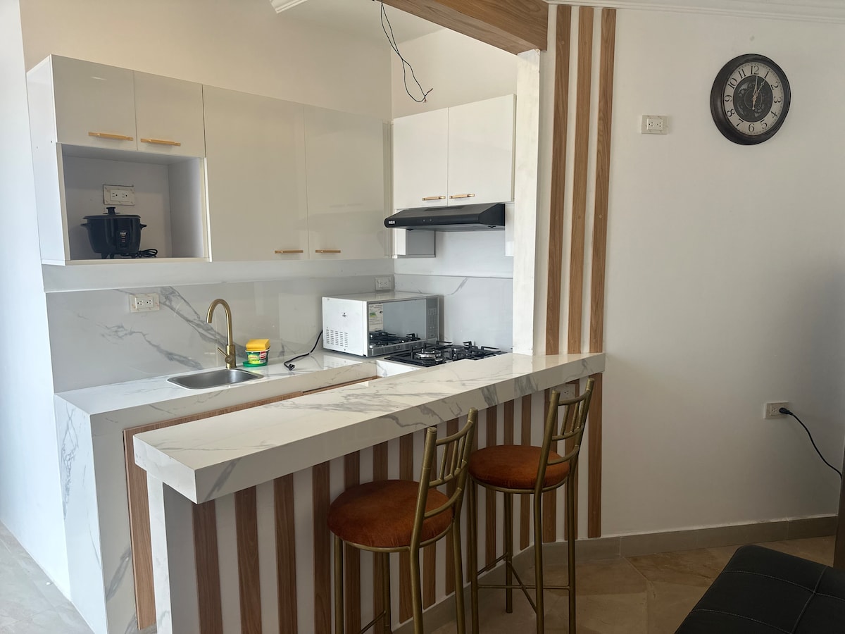 Nikmati ruang baharu, bergaya dan minimalis. Apartmen ini merangkumi: - Dapur yang serba lengkap - Kawasan makan - Bilik mandi moden - Tempat letak kereta persendirian - Bilik tidur dengan katil saiz Queen - Tilam udara untuk 2 tetamu tambahan Sesuai untuk pengembara yang mencari keselesaan dan privasi dengan lokasi strategik: -6 minit ke terminal bas - 8 minit ke lapangan terbang antarabangsa - 15 minit ke Malecón 2000 - 15 minit ke Samborondón