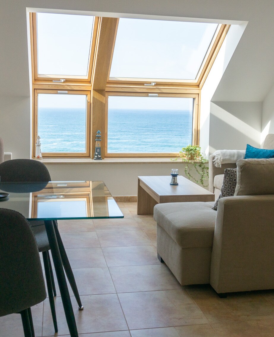 Penthouse dengan pemandangan laut yang menakjubkan. Ia mempunyai teres 30 meter, dua bilik tidur dengan pemandangan laut langsung, dapur, ruang tamu dan bilik mandi. Semua bilik ada pemandangan laut. Dataran garaj dan turun ke pantai bendera biru. Bilik tidur utama terdiri daripada satu katil 160, bilik kedua mempunyai satu katil yang boleh menjadi single atau double 160. Dapur dengan sarapan menghadap laut. Ruang tamu dengan Chaise longue.