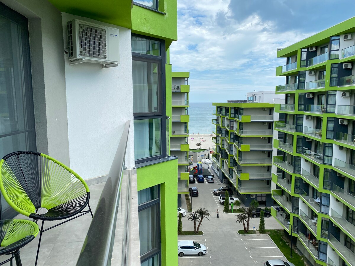 Sunrise Deko Apartment is new unit - with lateral view to the sea at a high & quite floor ✔ Completely new unit, perfect for a family with two children or for 4 adults. ✔ Full equipped kitchen, washing machine ✔ The beach area is one of the best in Mamaia Nord ✔ In close proximity you can find diverse restaurants and beach bars. ✔ Within walking distance of the new supermarket Lidl Mamaia Nord. ✔ Nespresso coffee on the house! Looking forward to hosting you!
