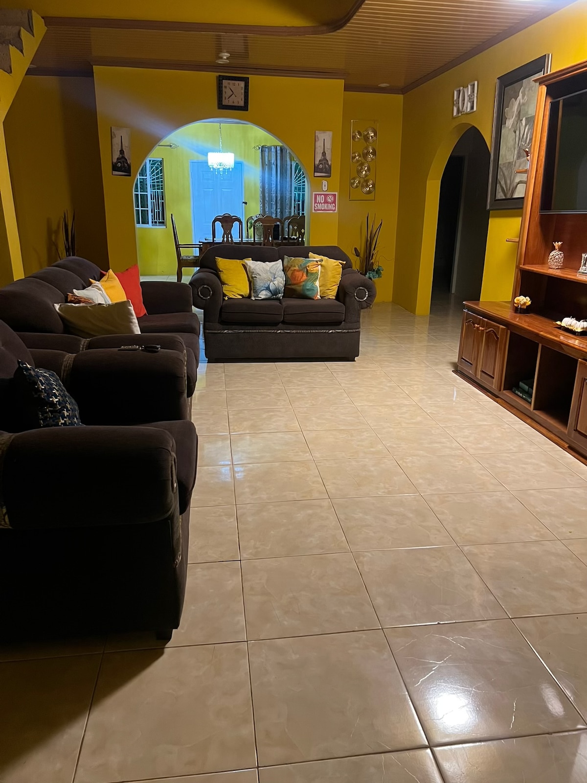 Relax in this pleasant and spacious home. This 4-bedroom house can accommodate up to eight guests quite comfortably. No worries if you have a larger group , a queen-sized air bed is available at your request. You will have this home entirely for you and your team. No sharing at all. Located approximately 1.5 miles from the town of Mandeville. Easily accessible to taxi services. Emergency services (Hospitals, Police, Fire Services) are less than 10 minutes drive away.