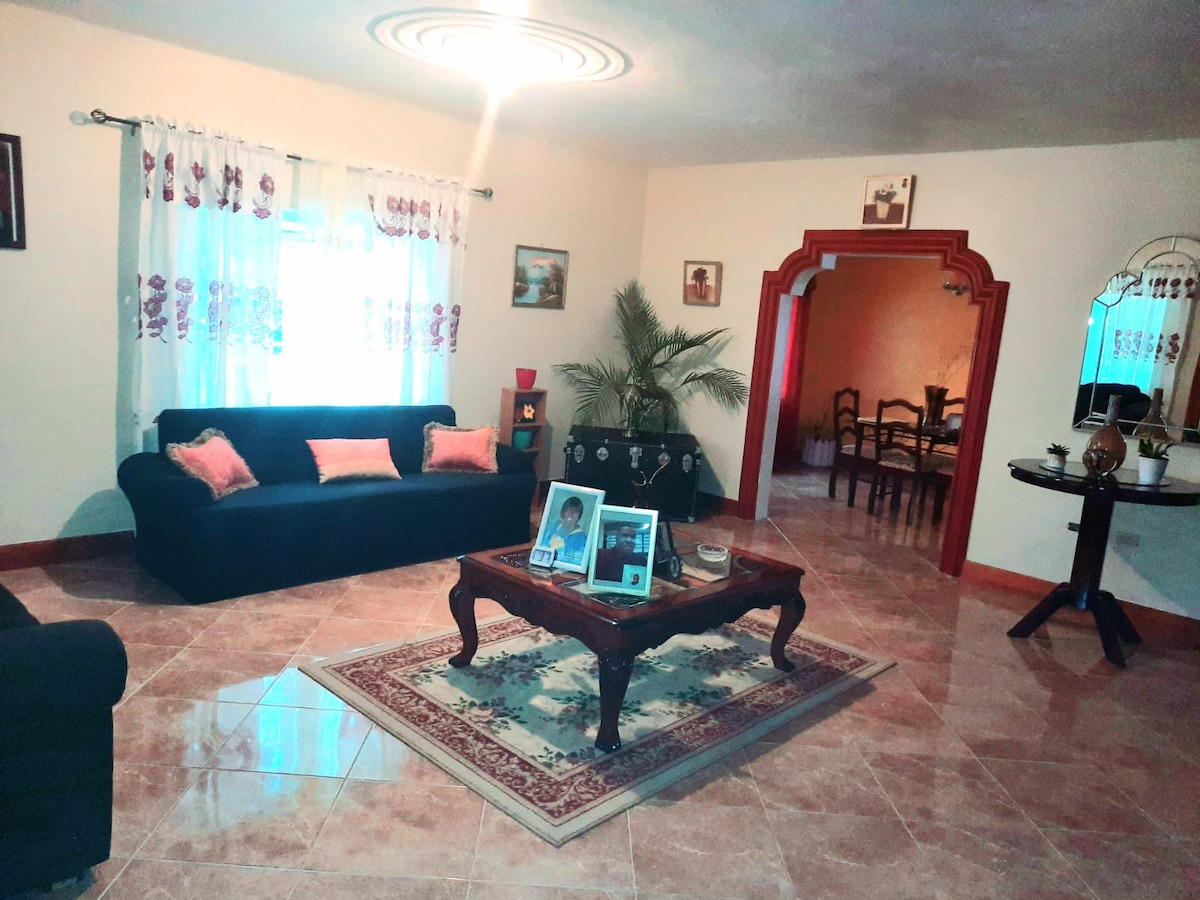 Apartmen 2 bilik tidur yang luas dengan dua bilik tidur en suite, dapur yang luas, gimnasium, bilik air dan 2 patio. Ruang ini terletak di pusat bandar, kurang daripada 5 minit dari pusat bandar. Sungai dan pantai juga berjarak 30 minit. Saya boleh dihubungi 24/7 dan boleh membantu anda bergerak di sekitar Mandeville. Bersantai dan bersantai di ruang tamu, dihiasi dengan tv pintar 65 inci. Bilik tidur utama juga mempunyai TV. Rumah ini mesra keluarga, dengan permainan seperti catur, ludo, Nintendo NES dengan lebih 50 kartrij.