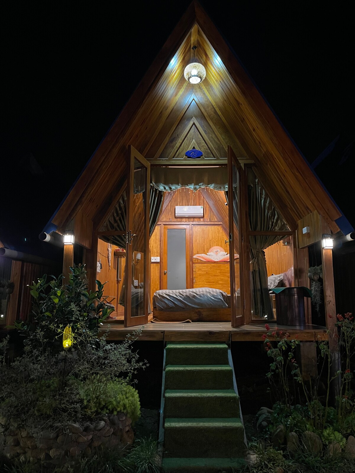 Tersembunyi dalam kabut Măng Đen, Rumah Sumi ialah rumah kayu yang menawan di atas bukit. Sentuh awan dari percutian peribadi ini, sesuai untuk pasangan. Tingkap besar menghadap hutan pain dan awan yang terapung. Petang: koko panas di bawah lampu lembut, diserikan oleh angin gunung. Di sini, masa berhenti; kebimbangan lenyap, meninggalkan cinta yang damai. "Mimpi yang tergantung di langit," ia sesuai untuk "melarikan diri dari dunia" bersama orang tersayang anda.