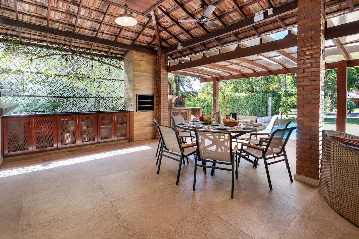 Tempat percutian yang dikelilingi oleh kehijauan pokok dan kebiruan laut, di Kondominium Sítio Bom yang eksklusif, sesuai untuk hari-hari yang tenang bersama keluarga dan rakan-rakan. - Kolaborator setiap hari (09 hingga 16 jam) sudah TERMASUK DALAM NILAI. - Daftar masuk 11:00 dan Daftar keluar 15:00 di kawasan ini. - Pantai persendirian kondominium 350m dari rumah dalam pelan. - Rumah dengan kolam renang, barbeku dan ketuhar kayu. - Tasik dengan ikan dan itik di hadapan rumah. - Kami menerima lebih daripada 16 orang, lihat. - Kotak dinding untuk mengecas kereta elektrik.