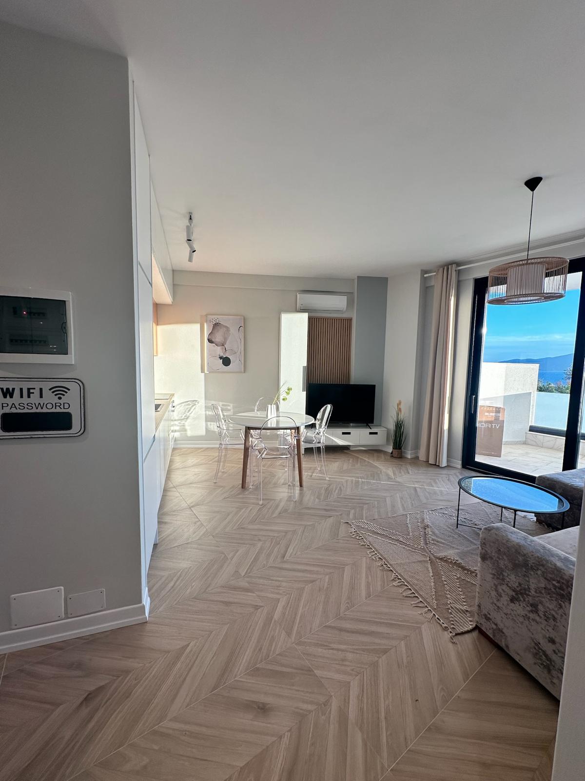 Wyobraź sobie poranek z widokiem na Morze Jońskie i wyspę Korfu, która wyrasta na horyzoncie jak żywy obraz zmieniający się wraz ze światłem dnia. Ten dwupokojowy apartament na Green Hill w Sarandzie łączy komfort, spokój i bliskość natury z szybkim dostępem do centrum — zaledwie 10 minut spacerem od promenady. Położony w cichej, kameralnej okolicy sprzyja pełnemu wypoczynkowi. Do dyspozycji gości jest basen z widokiem na morze oraz siłownia wewnątrz budynku.