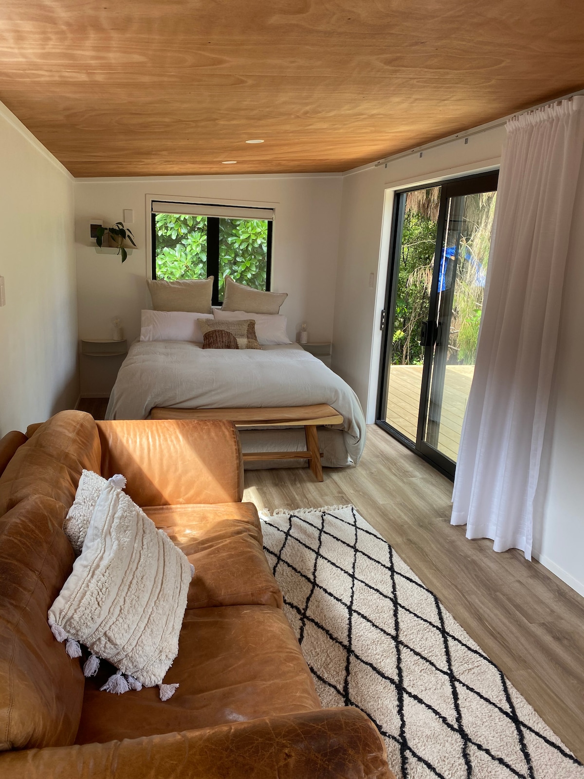 Beberapa minit dari tempat meluncur terkenal di dunia Raglan—Wainui Retreat menawarkan tempat percutian peribadi yang tenang yang dikelilingi keindahan semula jadi. Bersantai dan segarkan diri dengan sauna dan mandian ais terpencil anda sendiri, tersedia secara eksklusif untuk tetamu. Studio kami yang direka dengan elegan menampilkan katil queen mewah, dapur kecil moden dan bilik mandi yang cantik. Dek yang luas dan cerah — sesuai untuk makan di luar, yoga, atau hanya menikmati ketenangan. Wainui Retreat - Tempat yang lebih daripada sekadar penginapan.