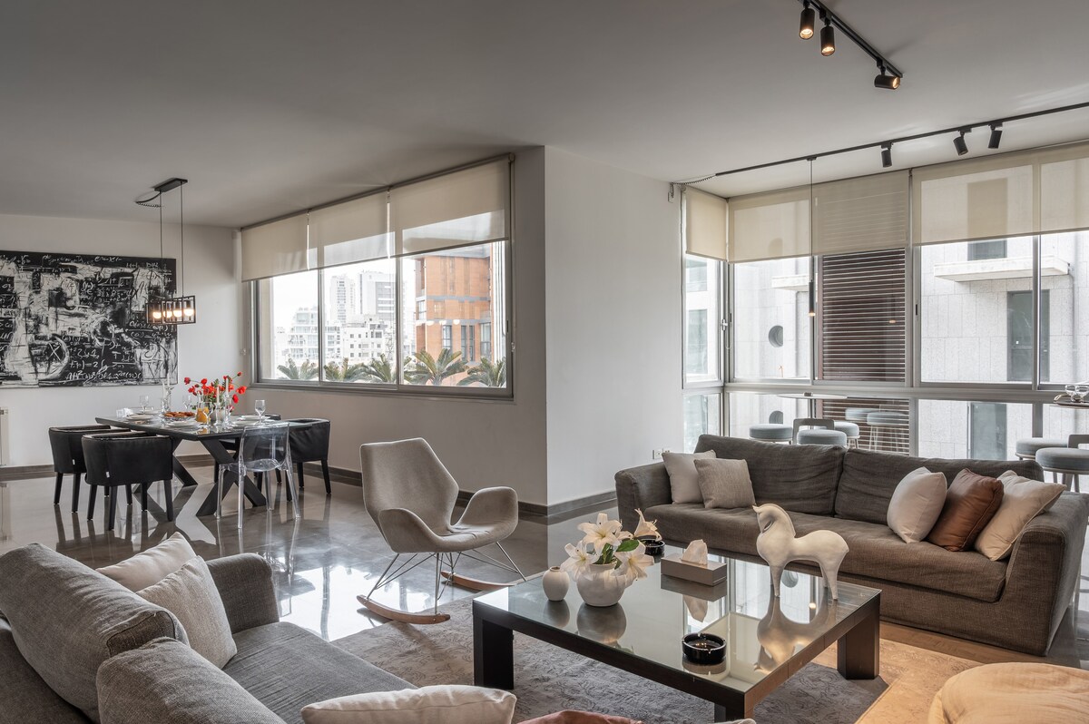 Terletak di tengah-tengah Ashrafieh - Beirut yang meriah, apartmen gaya boho kami yang luas dan direka dengan indah menawarkan anda peluang untuk tinggal seperti penduduk tempatan sebenar. Anda akan mendapat akses mudah ke pasar raya, kedai roti, kafe dan restoran berdekatan dan hanya 9 minit berjalan kaki ke pub, bar koktel dan tempat makan yang bergaya di Mar Mikhael. Bersantai di balkoni besar dengan pemandangan terbuka yang indah, sesuai untuk bersantai, membaca, atau menikmati pesona unik Beirut. Nota: Elektrik 24/7
