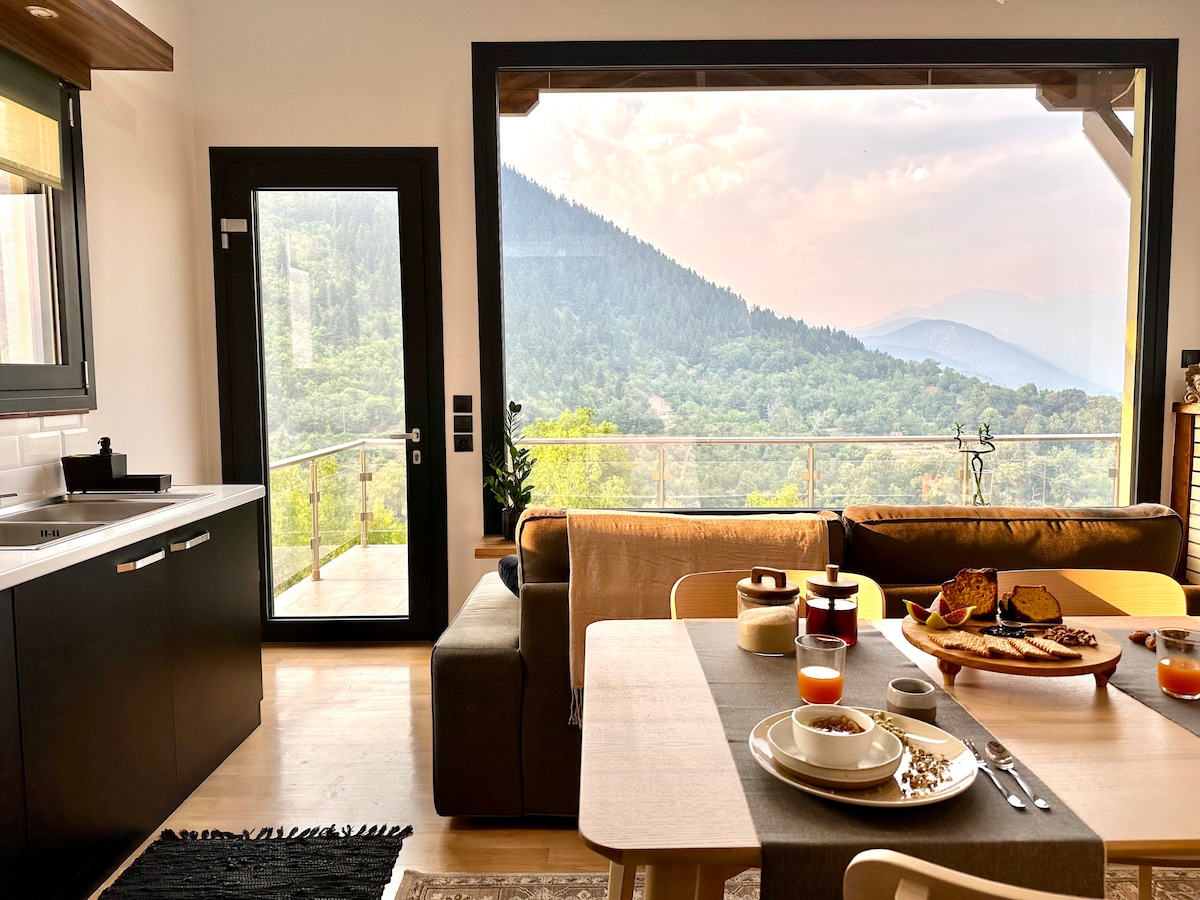 Ini adalah ruang yang menyenangkan, terutamanya selesa, dengan hiasan yang prihatin dan gaya yang sangat moden. Rumah mempunyai tahap kemudahan yang tinggi yang akan menjadikan penginapan anda pengalaman yang menyeronokkan. Persekitaran hijau digabungkan dengan pemandangan unik puncak tertinggi menjadikannya ideal untuk mana-mana musim. Terletak 2.5 km dan hanya beberapa minit memandu dari pusat Karpenisi, lokasinya menawarkan percutian singkat ke kampung-kampung sekitar dan pusat ski.
