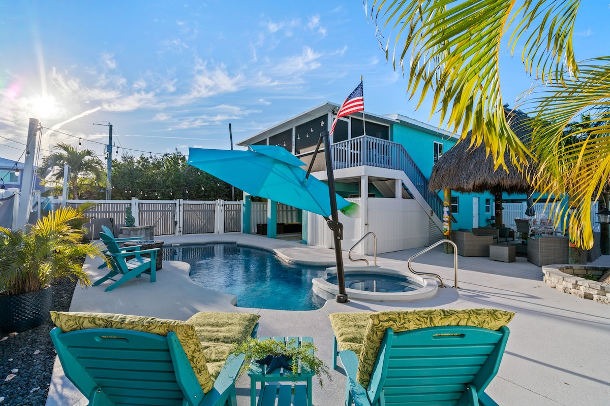 Modern Tropical Paradise | Marathon, FL Stylish home in exclusive Flamingo Isle, minutes from Sombrero Beach, marinas, fishing piers, indoor surf-style shop, and the Florida Keys Country Club. 3 bed | 2 bath + den Downstairs full bath with handicap-accessible walk-in shower Living room + playroom (pool table, games) Outdoor: Heated pool , Jacuzzi, BBQ, tiki hut Corner lot with parking for boat trailer & RV (full hook-ups)
