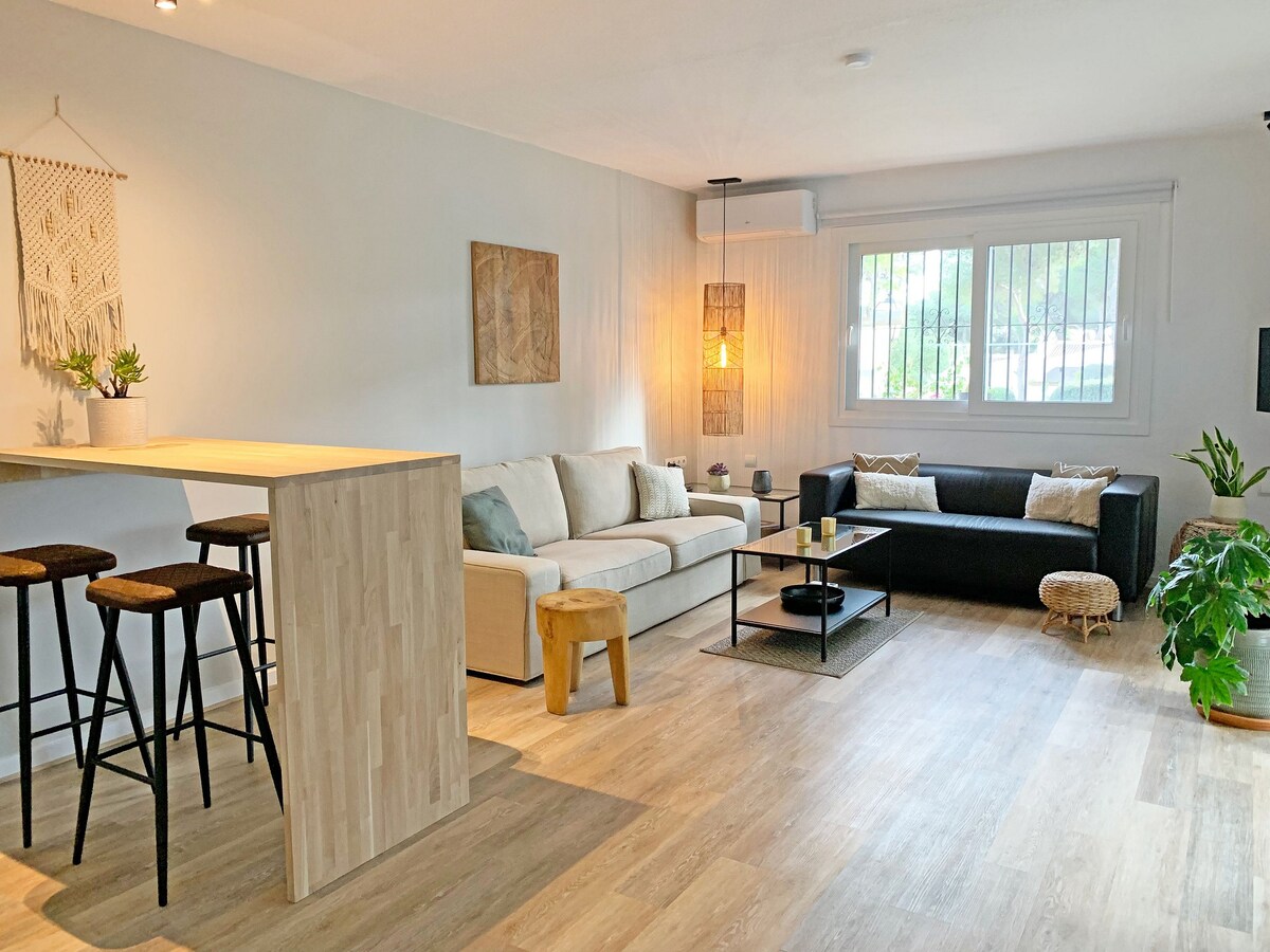 Rumah percutian dalam jarak berjalan kaki ke pantai - 3 Bilik Tidur, 2 Bilik Mandi, 6 Orang Tidur. Vila 3 bilik tidur yang baru diubah suai 150 meter dari pantai, pemandangan laut separa, tempat letak kereta persendirian, ruang makan luar dengan BBQ, teres persendirian, tempat letak kereta, internet gentian optik dengan WiFi di seluruh kawasan, dek matahari dengan pancuran mandi luar, TV antarabangsa dan banyak lagi. Semuanya dalam jarak yang singkat, restoran, pasar raya, bar dan pantai. Semuanya baru dan rumah telah dihiasi dengan cantik. Selamat datang