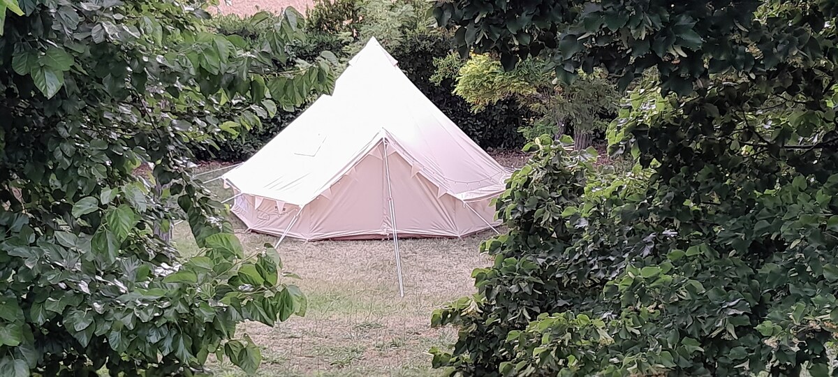 Khemah safari kami yang luas menawarkan pemandangan yang indah di atas lembah kami dan mengikut prinsip "Glamping" dilengkapkan sepenuhnya dengan kemudahan kebersihan sendiri, dapur lengkap, 3 bilik tidur dan mempunyai tidak kurang daripada 50 m2 ruang tamu! Dari khemah safari anda, anda boleh berjalan melalui kebun zaitun ke taman kami dan anda boleh menggunakan kolam renang kami dan semua kemudahan lain di kediaman kami. Kami terletak di rantau Le Marche berhampiran bandar Treia yang indah.