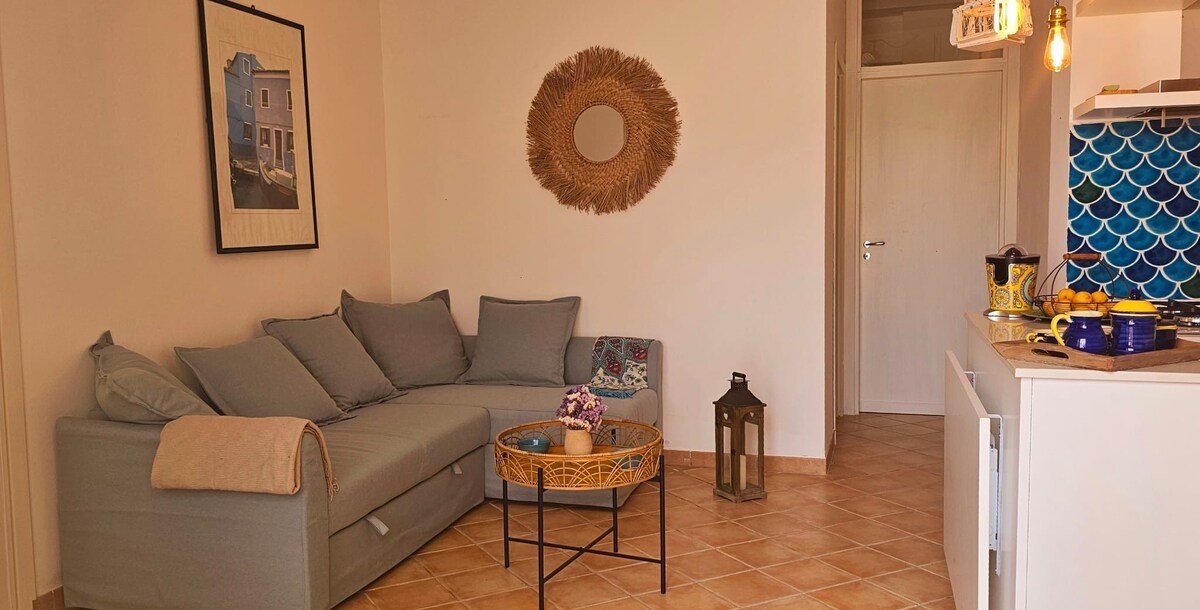 Rumah ini, dilengkapi dengan gaya semula jadi vintaj, terdiri daripada studio dengan dapur kecil dan bilik mandi dengan pancuran mandi. Ia diakses dari pintu pagar yang menghadap halaman. Apartmen ini cerah, menghadap marina Favignana yang menghadap istana Santa Caterina, dan dilengkapi dengan pendingin hawa. Dapur mempunyai keperluan untuk menyediakan sarapan dan makanan kecil.