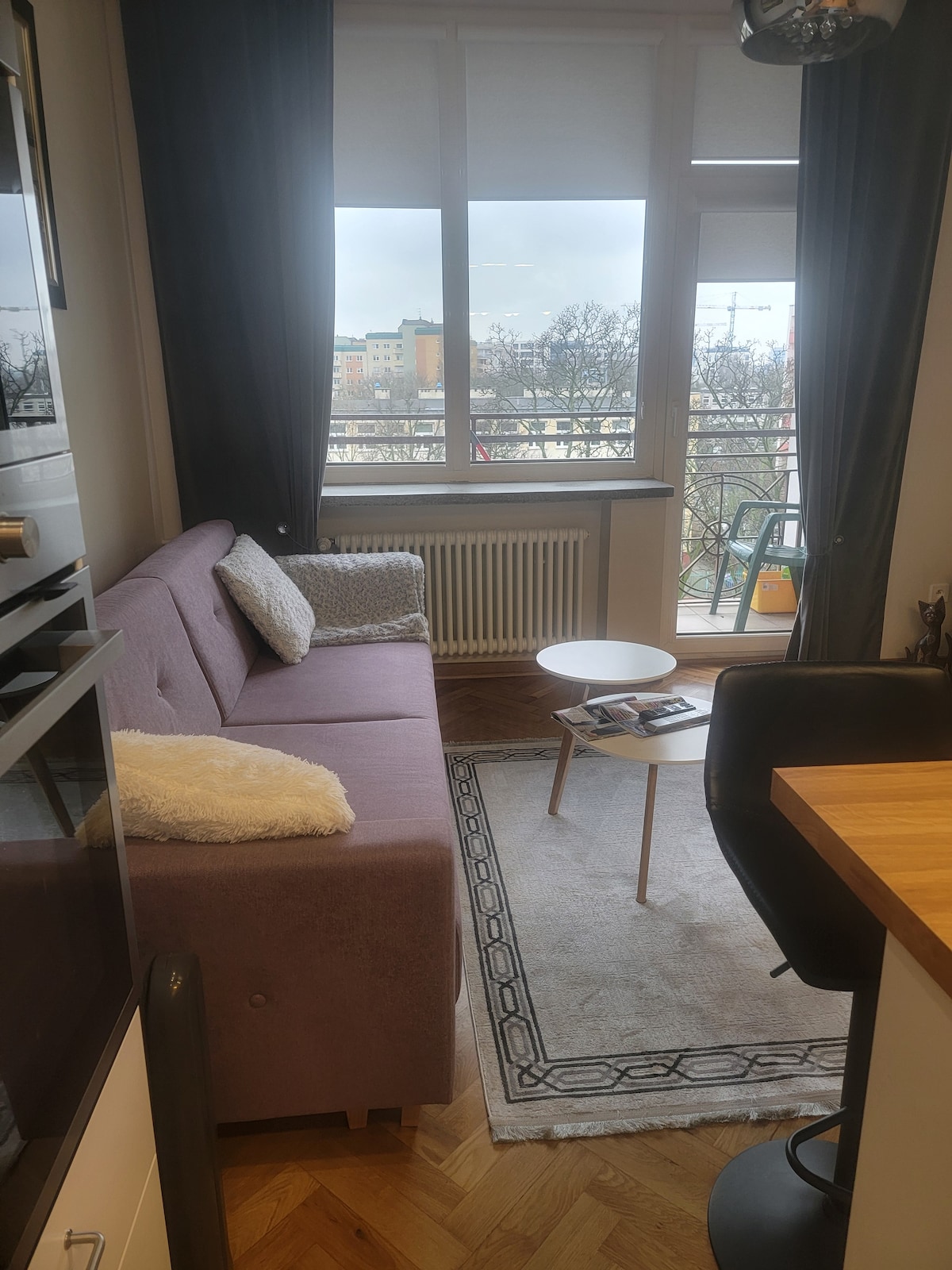 Saya mempunyai apartmen yang lengkap di kawasan yang tenang untuk ditawarkan. Anda boleh ke pusat bandar dan Stadium Negara dari sini dengan mudah. Stesen basikal bandar Veturilo berhampiran. Di blok ini, terdapat sebuah kedai terbuka di mana anda boleh membeli barangan keperluan asas, makan sesuatu yang panas, membeli kopi.