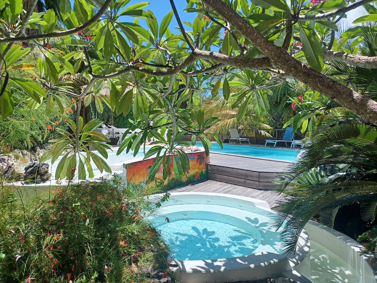 Kekuatan: - Teres teduh berventilasi - Pantai 5 minit memandu - Sesuai untuk kumpulan (sehingga 10 orang) - Tempat letak kenderaan - Wifi - dapur lengkap - barbeku Babwala ialah vila Creole tulen yang mempunyai banglo (dengan bilik tidur dan bilik mandi berasingan), terletak di sisi liar Marie-Galante, berhampiran dengan pantai indah Anse Canot dan Anse de Mays. Tempat yang benar-benar tenang, anda boleh berehat di tengah-tengah alam semula jadi, menikmati kolam renang dan taman tropika.
