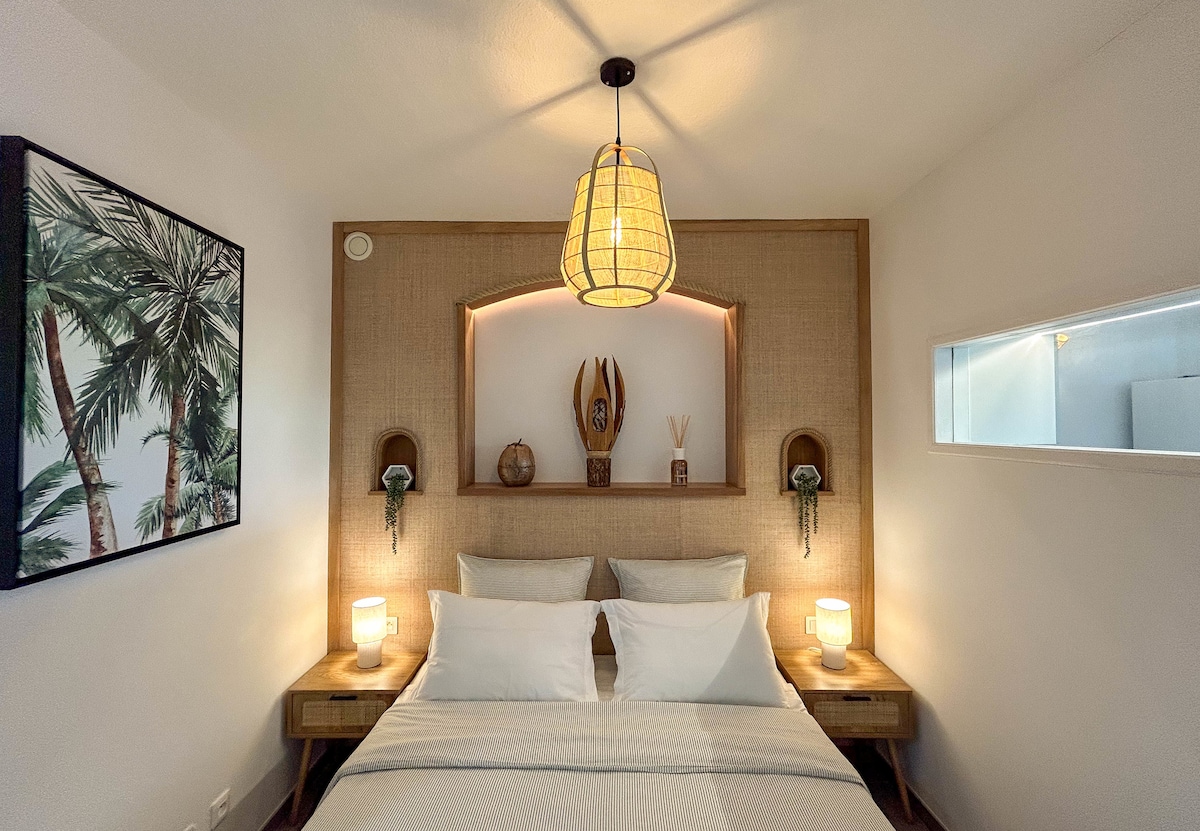 Studio besar, berkualiti tinggi, luas dan cerah, selesa serta dengan bilik mandi peribadi. • Hiasan yang dihias dengan bergaya, selesa dan tropika • Kebersihan terjamin • Kolam renang • Pendingin hawa • Katil bersaiz king • Wifi & TV • Dapur lengkap • Tingkat bawah dengan taman dan teres tertutup • Lokasi utama di kediaman yang tenang dan rimbun, terletak dengan ideal. Berhampiran dengan marina, pusat bandar, kedai, restoran, terminal feri, persiaran, dan banyak lagi.