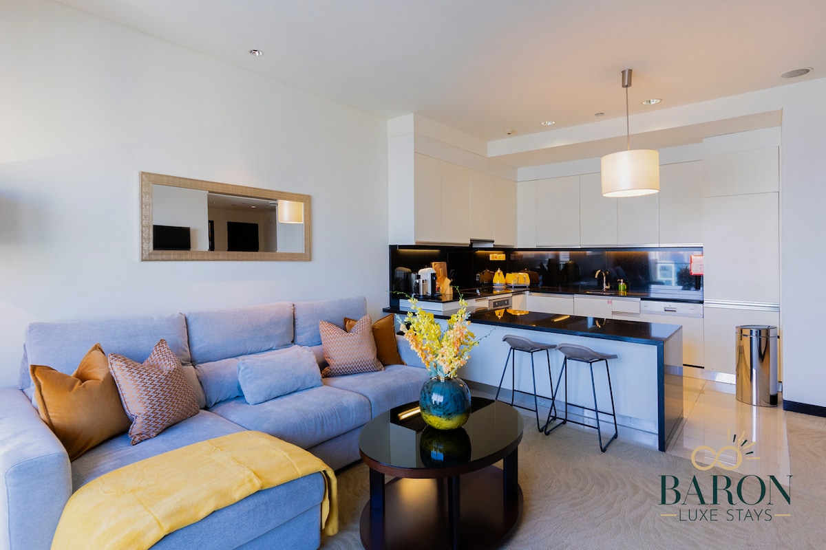 Moden 1 BR dengan Pemandangan Marina | Kolam Infiniti