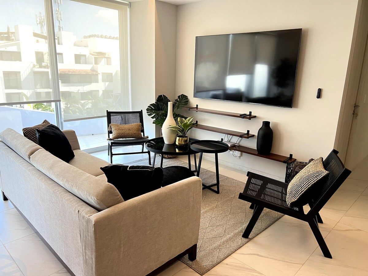 Apartmen ini terletak di kondominium Quinta Pacifica, bercirikan ketenangan dan keindahannya. Anda akan menyukai hiasan Mexico, kami mempunyai dua bilik tidur yang luas dengan dua bilik mandi lengkap, dapur lengkap dan ruang tamu yang hebat dengan balkoni yang bagus, dengan meja makan untuk sarapan luar yang enak jika anda mahu. Kawasan umum diselenggara dengan baik, anda mempunyai akses kepada palapas pantai, dan buaian rajut di kawasan taman, kolam renang dipanaskan.