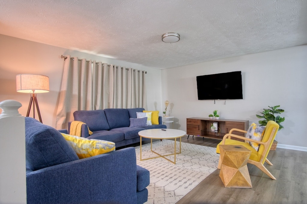 Chic, cozy, and close to everything—this stylish Irvington retreat is just steps from Ellenberger Park and only 10–15 minutes from downtown hotspots like Lucas Oil Stadium and Gainbridge Fieldhouse. Sleeps 6 with two queen beds and a sleeper sofa. Includes a dedicated office, high-speed Wi-Fi, fully equipped kitchen, and in-home laundry. Whether you're visiting for business or pleasure, enjoy the perfect blend of comfort, convenience, and charm.