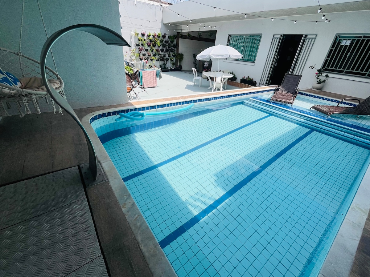 Casa Felicidade! Percutian selesa dengan hiasan unik, yang diilhamkan oleh budaya Amazon. Berhawa dingin sepenuhnya! • Ruang tamu besar dengan TV 58” • 1 bilik tidur dengan katil kelamin • 1 bilik tidur dengan 2 katil bujang • Mezzanine: TV, katil sofa berganda • 2 Bilik air • Dapur lengkap. • Wi-Fi dan penstriman pantas Terletak di tengah-tengah Belém, berhampiran restoran, kafe, pusat membeli-belah dan tarikan pelancong. Alami yang terbaik di Amazon dengan keselesaan dan keeksklusifan. Tempah sekarang dan jadikan penginapan anda tidak dapat dilupakan.