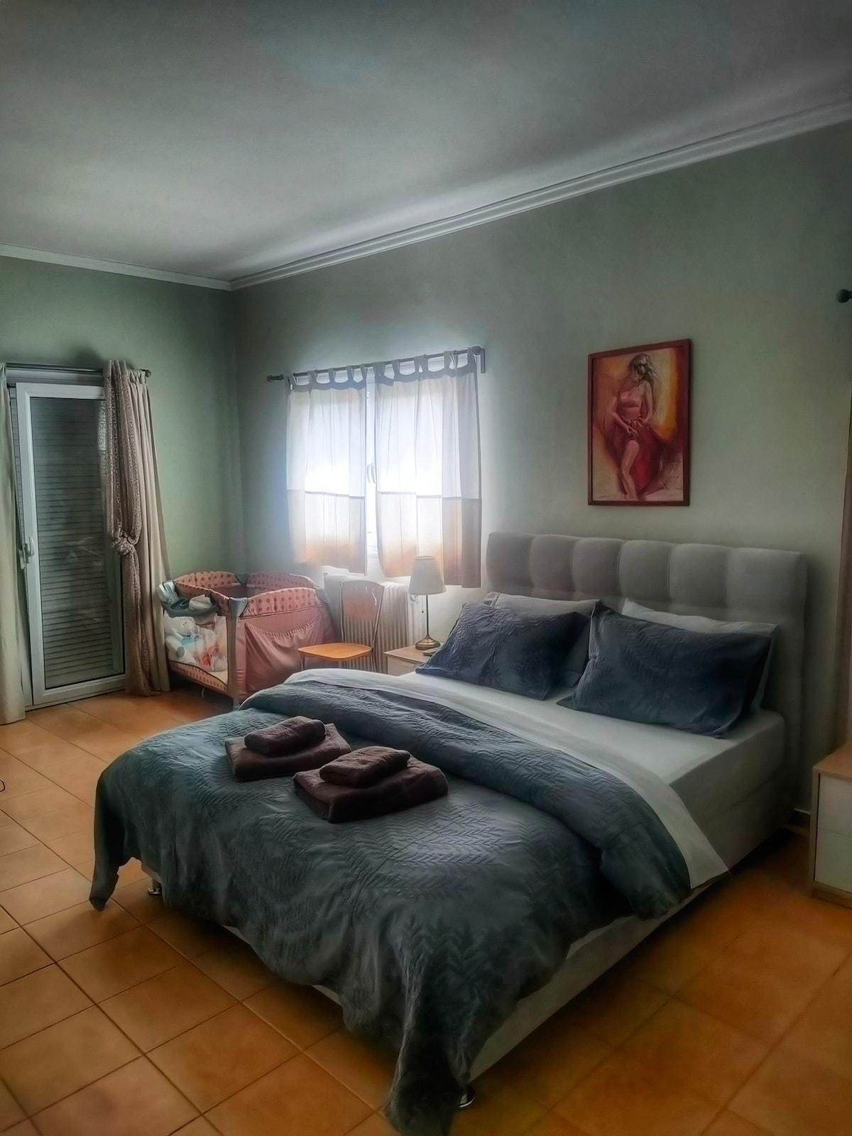 Selamat datang ke suite yang segar, luas dan moden di mana semuanya baru. Ruang elegan ini mempunyai katil saiz king yang mewah dan terletak di pusat Markopoulo hanya 7 minit dari Lapangan Terbang Antarabangsa Athens. Nikmati semua keselesaan rumah, termasuk: ✔ Mesin kopi Nespresso WiFi berkelajuan tinggi✔ PERCUMA ✔ Penstriman Netflix pada TV Pintar 55” ✔ Semua kemudahan penting untuk penginapan yang selesa dan santai Pengangkutan lapangan terbang tersedia atas permintaan, dengan caj tambahan.