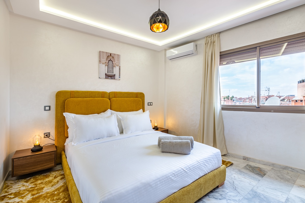 Terokai apartmen mewah kami yang menawarkan ruang tamu besar dengan teres, 1 bilik tidur dengan katil queen, dapur moden yang serba lengkap dan bilik mandi dengan jakuzi. Terletak di tengah-tengah musim sejuk, berhampiran dengan kemudahan 2 minit berjalan kaki dari kasino, 5 minit memandu dari Jemaa el-fna Square dan hanya berjalan kaki singkat anda akan menemui pelbagai pilihan restoran seperti NOTO, KHOYA, HUQQA... dan banyak lagi.