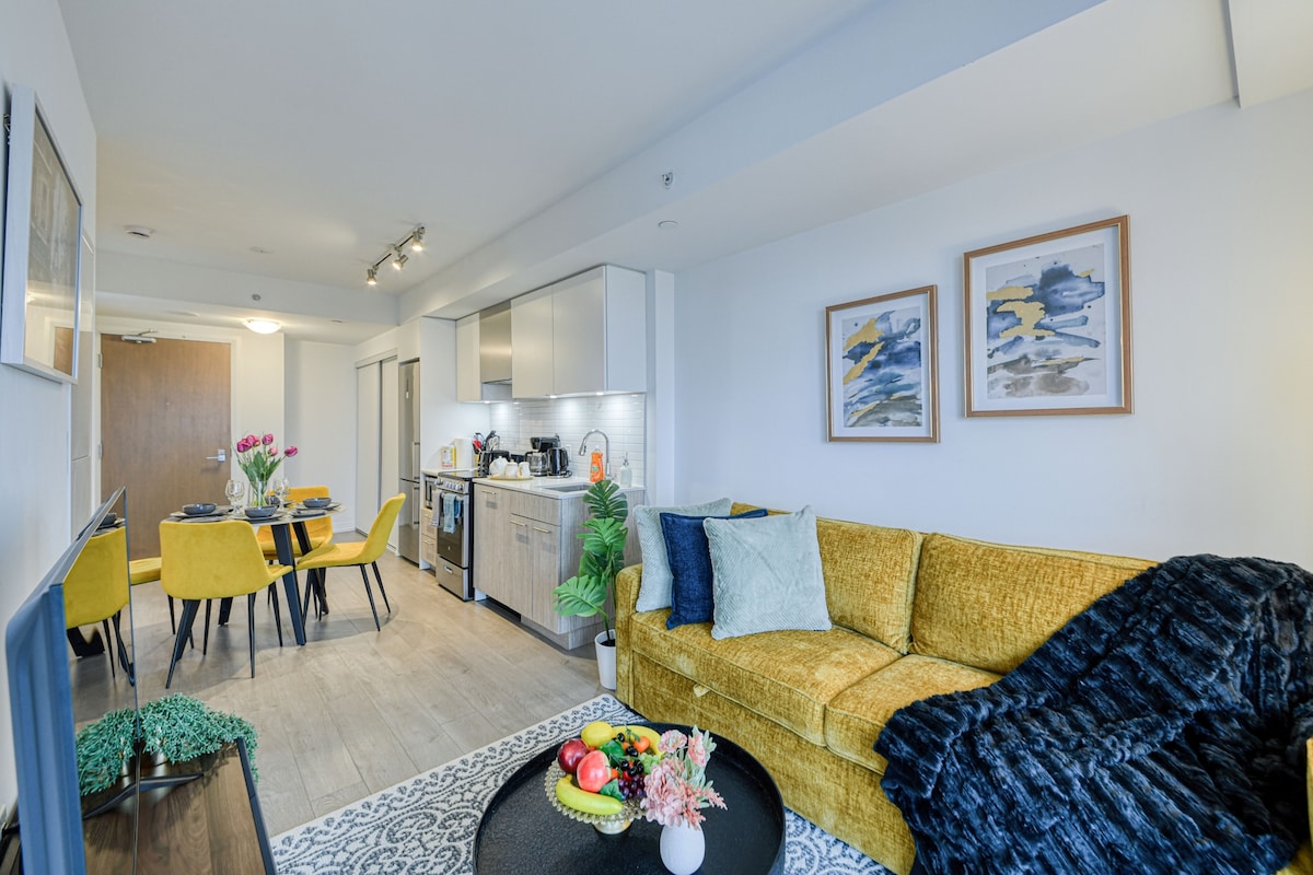 Selamat datang ke percutian Toronto anda yang bergaya! Terletak sempurna di sebelah Dataran Sankofa yang meriah, kondominium moden ini menawarkan gabungan keselesaan, budaya dan kemudahan yang terbaik. Kondominium yang luas ini direka dengan teliti untuk menampung 4 orang dewasa dengan selesa, menampilkan katil queen mewah dan katil sofa yang mudah. Dapur yang serba lengkap menjemput anda untuk menyediakan makanan anda sendiri, menambah sentuhan rumah kepada penginapan anda.