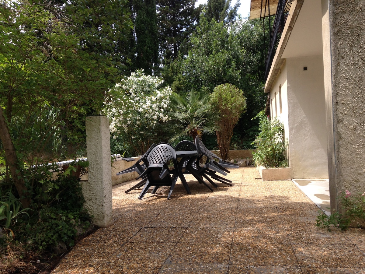 Apartmen seluas 100 m2 yang diubah suai sepenuhnya dan selesa dengan 1 ruang tamu besar, 3 bilik tidur, 2 bilik mandi dan 2 tandas yang terletak di tingkat 1 rumah. Taman persendirian untuk hidangan anda dalam suasana hijau di kawasan tinggi kampung Anduze Apartmen ini terletak di sebuah hartanah dengan 3 apartmen bebas. Taman landskap seluas 2,500 m2 dengan kolam renang dan tempat letak kereta umum di kawasan yang tenang 1.5 km dari pusat bandar WIFI percuma dan linen disediakan