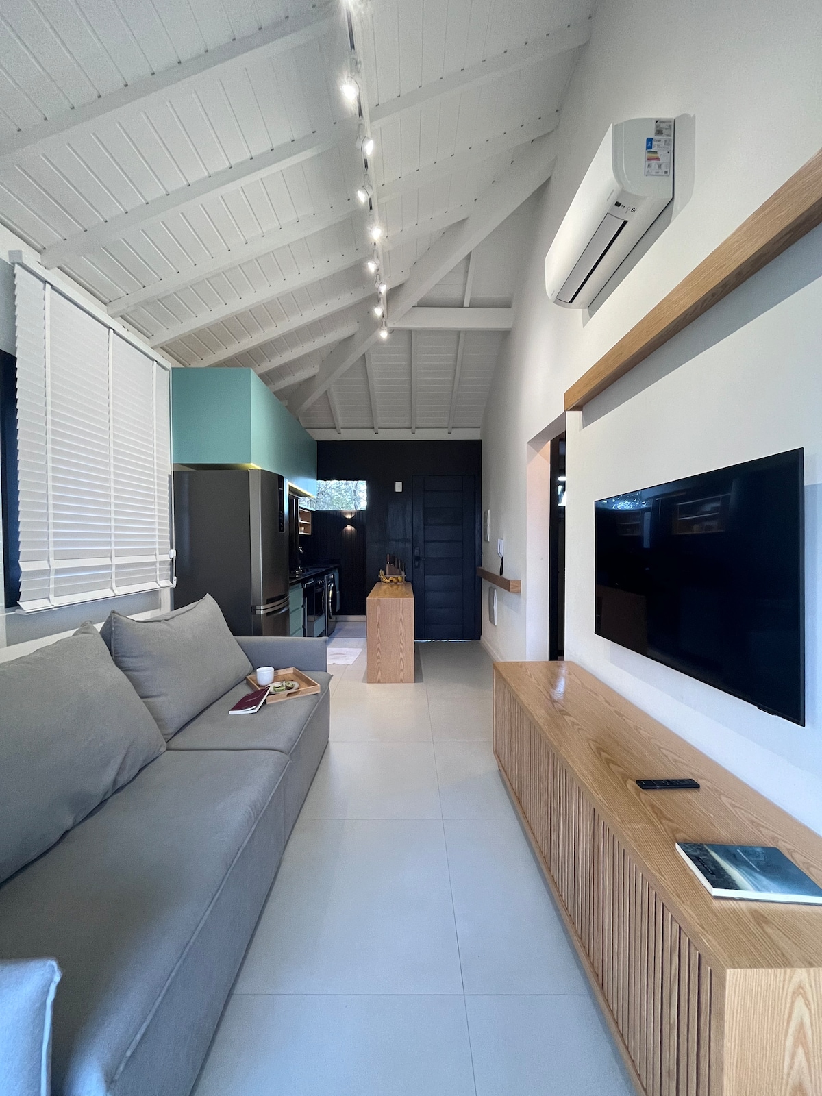 Bilik tidur dan ruang tamu Reserva Timeantube Condominium Apartment Suite dengan katil saiz queen, TV 65 inci dan pendingin hawa. Ruang tamu dengan sofa, meja makan, TV 50 inci, pendingin hawa dan tandas. Dapur lengkap dan lengkap. Balkoni besar dengan meja dan sofa. Kondominium dengan kolam renang luar, gelanggang, sauna, tempat letak kereta persendirian dan penjaga pintu 24 jam. Apartmen di Tingkat 1 - Tangga. Kami tidak mempunyai kawasan perkhidmatan. Kami terletak purata 10 minit berjalan kaki dari pintu masuk ke kampung Praia do Forte