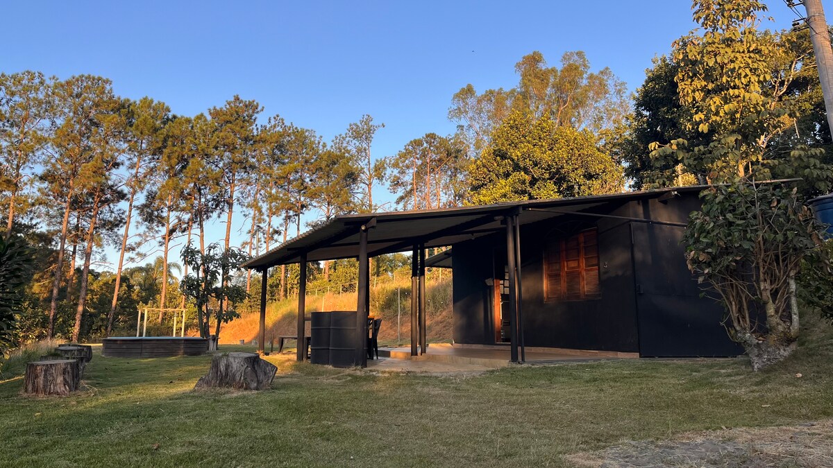 Bersantai di ruang yang tenang dan bergaya ini. Pondok kami adalah rumah tetamu dengan struktur kayu, agak bagus dan selesa. Terletak di dalam kawasan pemeliharaan alam sekitar, dalam komuniti berpagar, dengan pekerja rencam 24 jam, tasik memancing dan banyak alam semula jadi! Kami berada kira-kira 20 km dari Juiz de Fora. Bagi mereka yang mencari ketenangan di tengah-tengah alam semula jadi. Dari tahun 2024, kolam renang dan kawasan riadah akan dikongsi dengan chalet baharu dan mana-mana tetamu rumah utama!