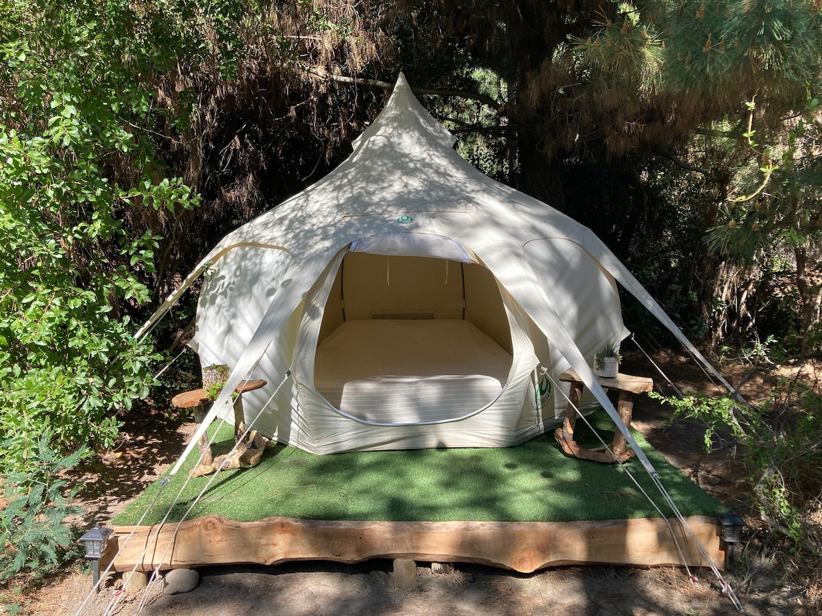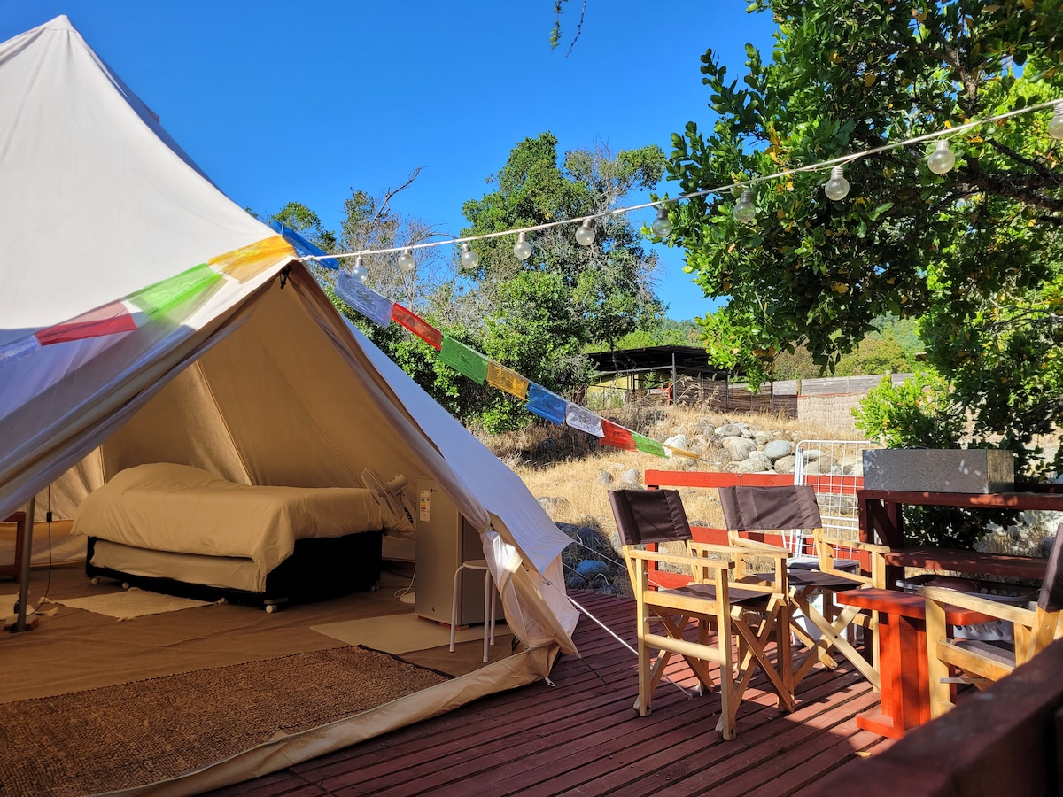 Ini adalah perkhemahan mewah yang selesa dan sangat peribadi tanpa jiran terdekat. Ia adalah struktur kecil yang sangat serupa dengan khemah. Terdapat katil kelamin dengan cadar. Platformnya besar dan mempunyai buaian dan meja dan bangku. Terdapat bilik mandi dengan pancuran mandi yang mempunyai air panas berhampiran dan rumah luar yang lebih dekat untuk lawatan tengah malam. Anda boleh menghubungi kami dengan berjalan kaki atau dengan 4x4. Kami gembira untuk menjemput anda di kawasan letak kereta. Kami ada wifi Starlink dan air panas