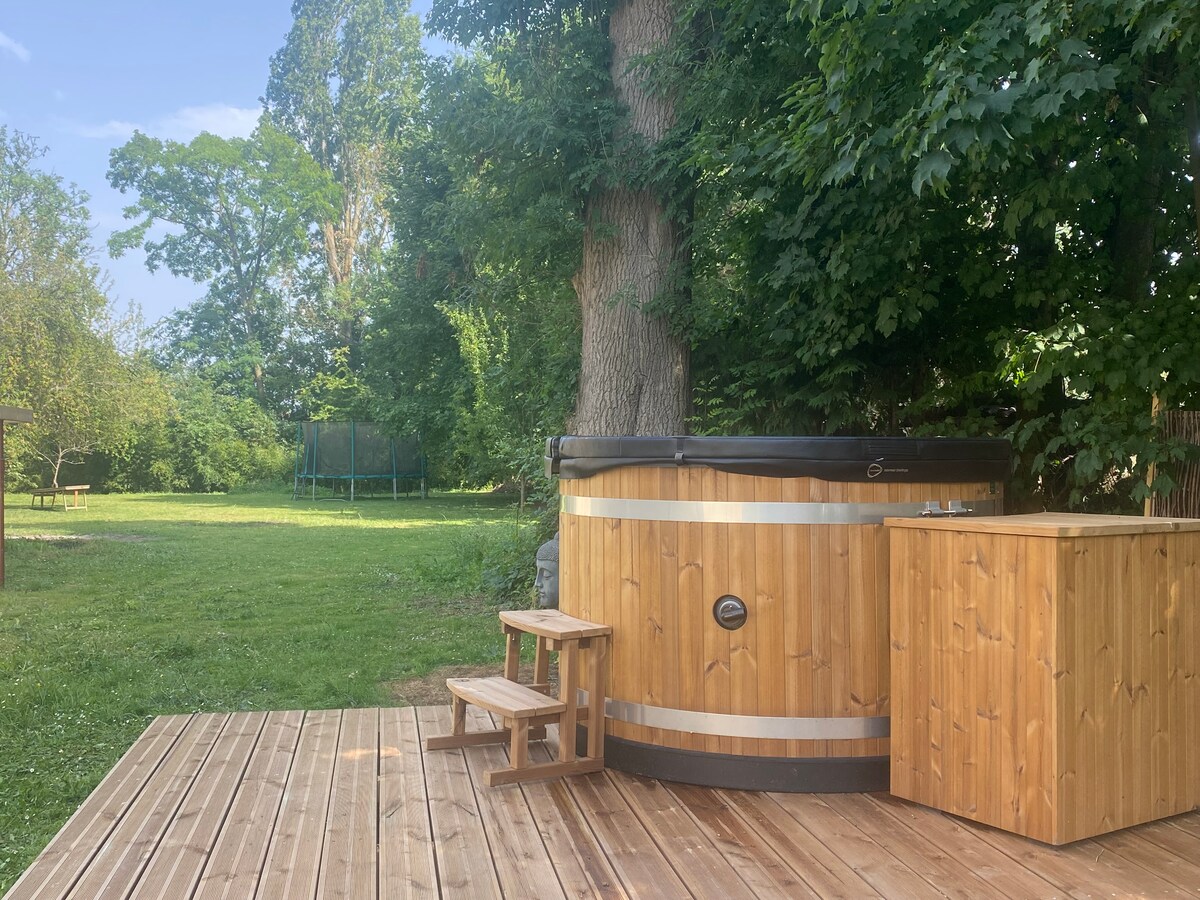 LA VIE SAGE ialah seluruh rumah mewah di pulau persendirian di sungai Seine untuk menikmati ketenangan mutlak di tengah-tengah alam semula jadi, hanya 25 minit dari Paris. BOLEH DIAKSES HANYA DENGAN BOT. Rumah ini mempunyai 2 bilik tidur, 2 bilik mandi, ruang tamu besar dengan dapur terbuka dan cerobong asap, taman dan teres 80m2 yang dilengkapi dengan tab mandi air panas dan sauna untuk mengagumi matahari terbenam yang mempesonakan di atas Sungai Seine. Rumah ini serba lengkap: pemanas bawah lantai, pendingin hawa, dapur, WIFI, TV, lampu bersambung.