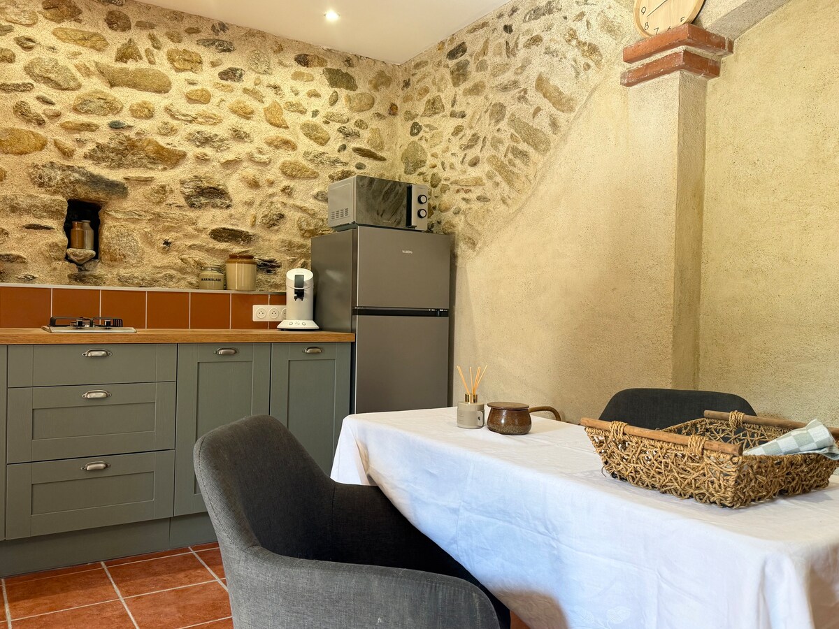 Terletak di tengah-tengah estet berhutan Mas d'en Bach di Maureillas-las-Illas, Studio Olivier mengalu-alukan anda dalam suasana yang tenang, di antara pokok oak, mimosa dan sungai. Di sini, alam semula jadi, ketenangan dan kedamaian menandakan hari anda. 10 minit dari tempat mandian air panas Boulou, 25 minit dari pantai Vermeille, 10 minit dari Perthus, di Sepanyol dan dari tempat berjalan kaki yang luar biasa. Tempat yang ideal untuk berhubung semula dengan alam semula jadi, berehat, dan bersantai.