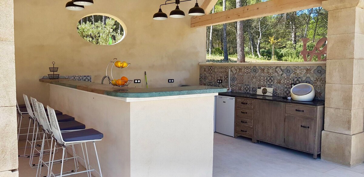 Selamat datang ke rumah desa Provençal kami yang menawan! Hidup seperti dalam novel Pagnol, dikelilingi oleh cahaya matahari dan nyanyian cengkerik. Terletak di antara ladang anggur dan ladang lavender, rumah ini menikmati pemandangan menakjubkan yang terbentang hingga ke Sainte-Victoire. Nikmati segelas wain rosé anda sambil melihat cahaya keemasan matahari terbenam yang mempesonakan! Kanak-kanak akan menyukai taman ini! Tiada akses pengangkutan awam. Rumah yang diubah suai dengan penuh kasih sayang yang menggabungkan pesona zaman dulu dengan keselesaan moden. Taman sentiasa berkembang. Boleh menempatkan hingga 6 orang dewasa + bayi.