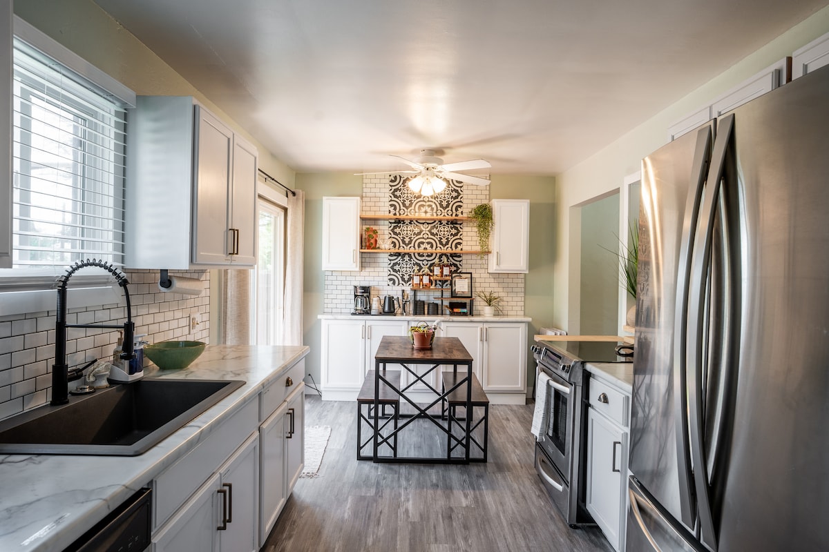 Keluarga anda akan berada berhampiran dengan segala-galanya apabila anda menginap di rumah yang terletak di pusat bandar ini. Beberapa minit dari kedai, restoran, taman, hospital, hiking, sungai & banyak lagi. Dapur & bilik mandi baru rosak, diubahsuai & dikemas kini. Tuannya mempunyai tilam king baru yang selesa. Tirai hitam di kedua-dua bilik tidur menjadikan tidur malam yang nyenyak. Banyak permainan untuk keseronokan keluarga anda. TV pintar dan Wi-Fi tersedia. Teres belakang kecil yang comel dengan akses BBQ & halaman. Termasuk bilik dobi penuh dengan peti sejuk tambahan..