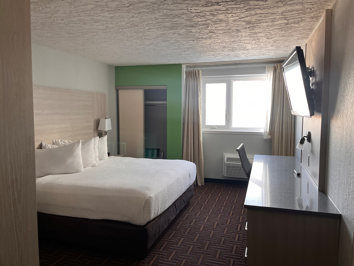 Enjoy views of the indoor pool while relaxing in a well-appointed two-queen room. Great for families enjoying the water park or events at the Lodge. Everything you need for a splash-filled stay.