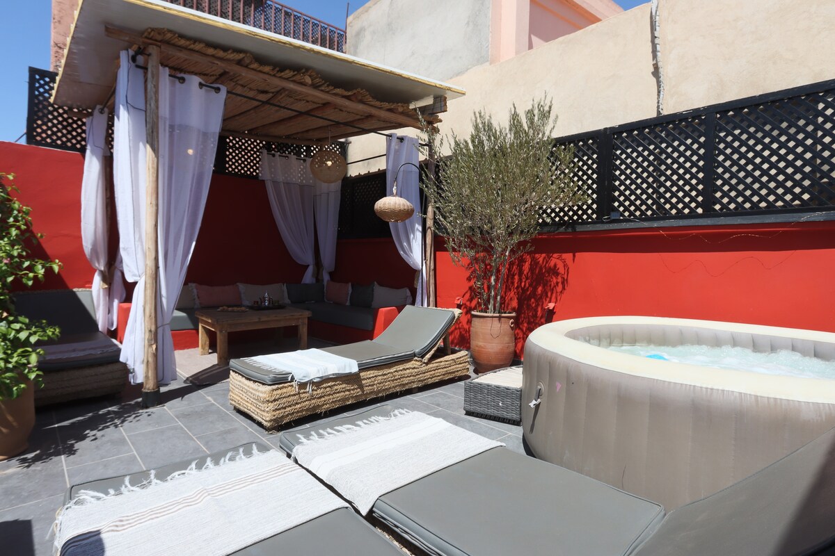 Riad yang sangat selesa dan menawan dengan Jakuzi yang terletak di pusat bersejarah Madinah berhampiran teres Rempah 8 minit berjalan kaki dari dataran Jemna el fna, diubahsuai sepenuhnya, lokasinya yang luar biasa membolehkan anda menikmati medina dan pusat sama ada dengan berjalan kaki atau dengan tempat letak kereta yang berjarak 6 minit, pengalaman medina di Riad 3 bilik tidur yang cantik ini, sehingga 6 orang dewasa dengan jakuzi, teres dan pemandangan pergola atlas di tempat yang damai
