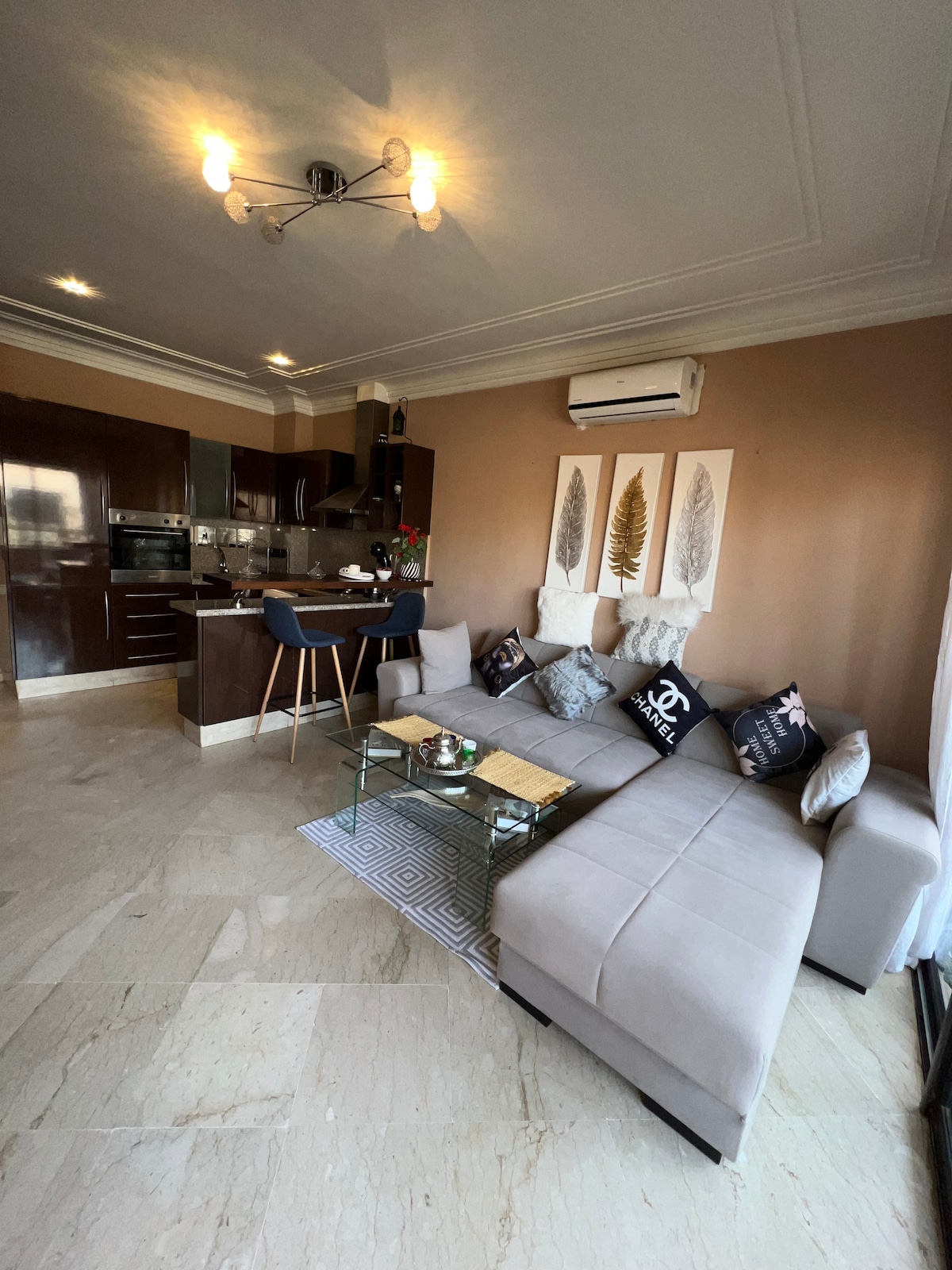Apartmen selesa yang terletak di marrakech yang terdiri daripada ruang tamu dengan dapur Amerika, 1 bilik tidur dan 1 bilik air. 2 ruang tamu mempunyai penyaman udara yang boleh diterbalikkan. Hiasannya adalah gabungan kemodenan dan sentuhan oriental dengan teres yang hebat yang mempunyai beranda untuk dinikmati sepanjang tahun. Tempat letak kereta bawah tanah. Anda akan menginap 1.9 km dari taman Majorelle dan 3.5 km dari dataran Jemaa el-Fna. Lapangan terbang berjarak 7 km, stesen kereta api Marrakech 5min away