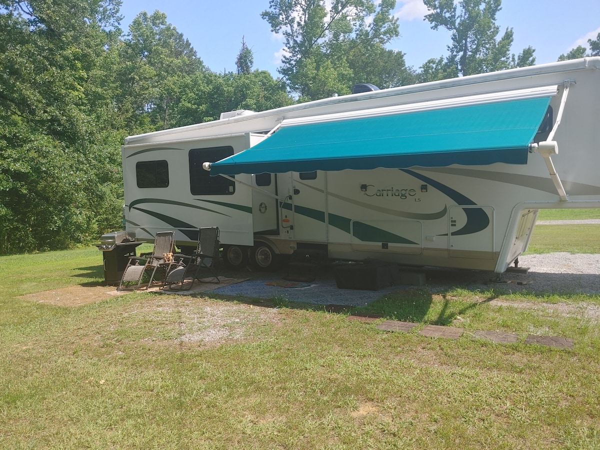 Premium RV w/ private lawn, full park view, fire pit, grill, picnic table & parking. Sleeps 4 (queen bed + pullout). Full-size kitchen, Keurig w/ C2 Custom Grinds coffee. Sanitized & pest-controlled. 10 min to Watts Bar Lake. 45 min to Knoxville. 1 hr to Gatlinburg.