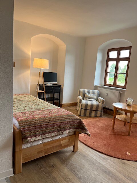 Apartmen 30 meter persegi berperabot cantik kami untuk 2-3 orang di resort Weinböhla berhampiran Dresden mempunyai pintu masuk berasingan, ruang tamu dengan katil double, juga boleh laras berasingan,pancuran mandi dan dapur serba lengkap. Cadar, tuala dan pembersihan akhir disertakan dalam harga. Tempat letak kereta di penginapan. Tarikan berhampiran seperti Moritzburg, Meissen dan Dresden boleh dicapai dengan mudah dengan bas dan kereta api atau laluan basikal.