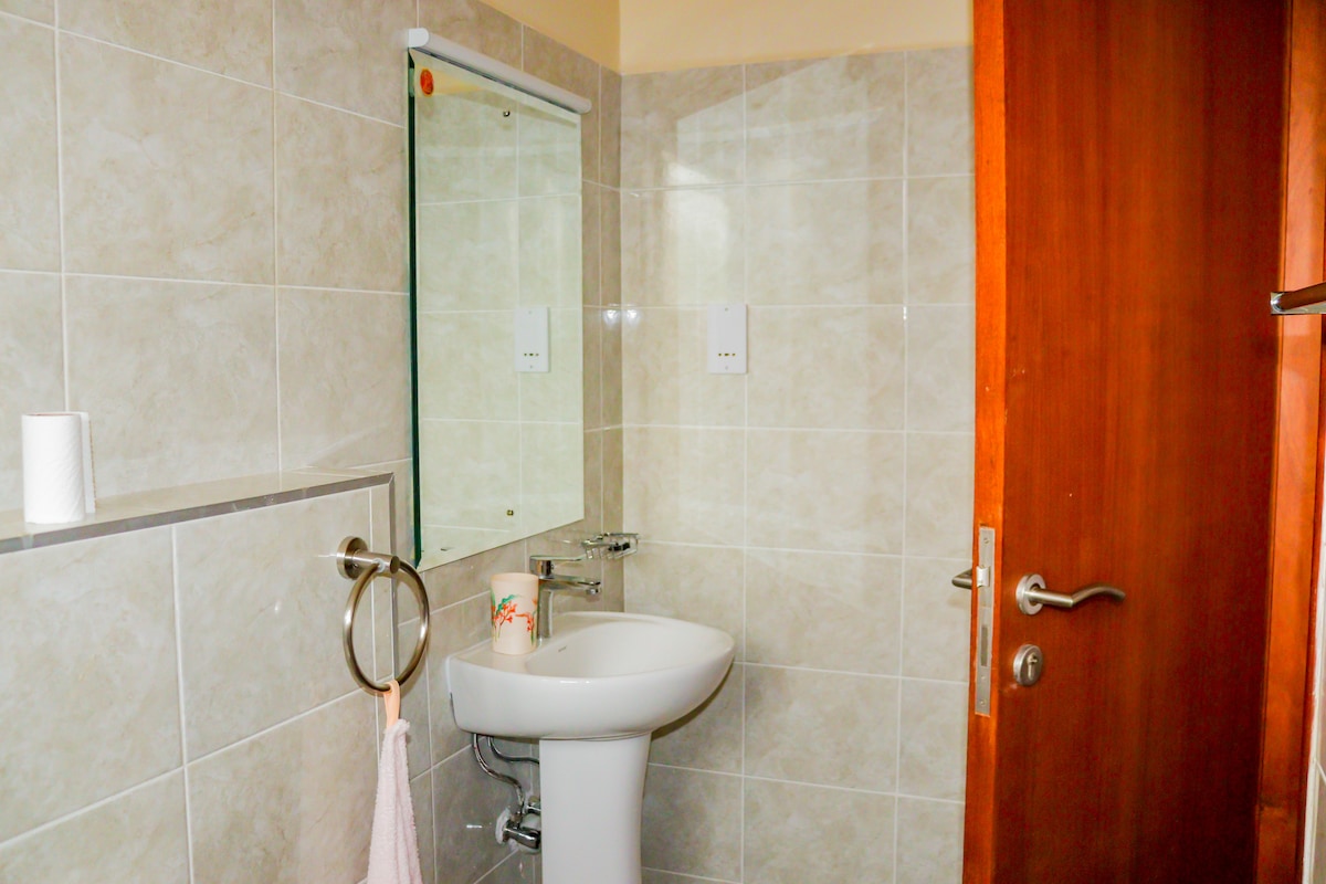 Bertenang di percutian yang unik dan tenang ini. Bersantai di ruang yang tenang, bergaya & selamat ini satu apartmen bilik tidur yang terletak di Naka,Nakuru,Kenya. Tetamu yang menginap dengan kami menikmati akses kepada Netflix,WI-FI, dapur lengkap kami menyediakan air minuman bersih,kelengkapan dandanan diri dan pancuran air panas segera kepada tetamu kami. Terdapat juga pelbagai pusat membeli-belah utama yang berdekatan. Perkhidmatan teksi (24/7) mudah didapati di kawasan ini.
