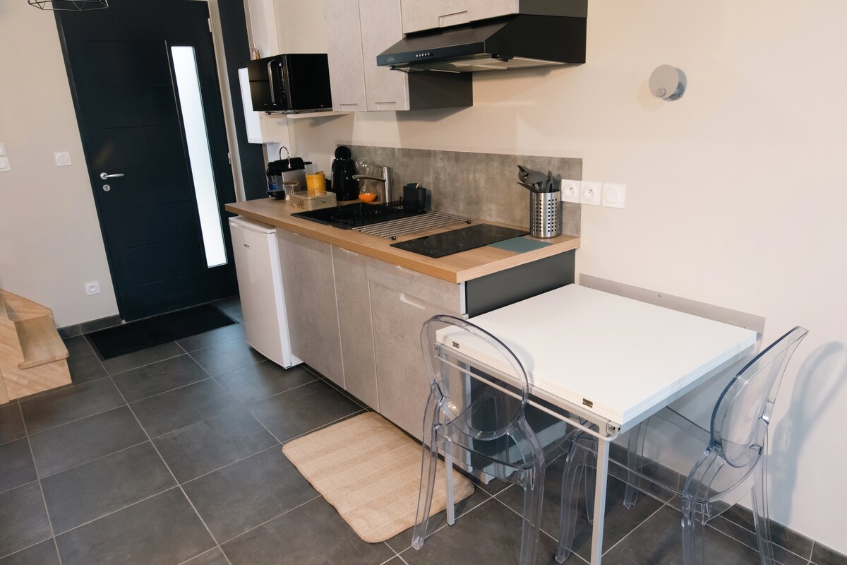 Di tengah-tengah bandar zaman pertengahan Beaugency, apartmen 2 bilik seluas 45 m² diubahsuai untuk 4 orang. Anda akan menghargai keselesaan, hiasan bergaya serta akses terus ke semua kedai tetapi juga ke restoran pizzeria, kilang bir atau gourmet yang berbeza (untuk semua citarasa pada semua harga). Dan semuanya berjalan kaki! Apartmen ini terdiri daripada: - Dapur dengan pinggan,LV, ketuhar, pembuat kopi... - Ruang tamu dengan meja dan katil sofa. - Bilik tidur dengan katil 140 -SDB dengan mesin basuh -WC