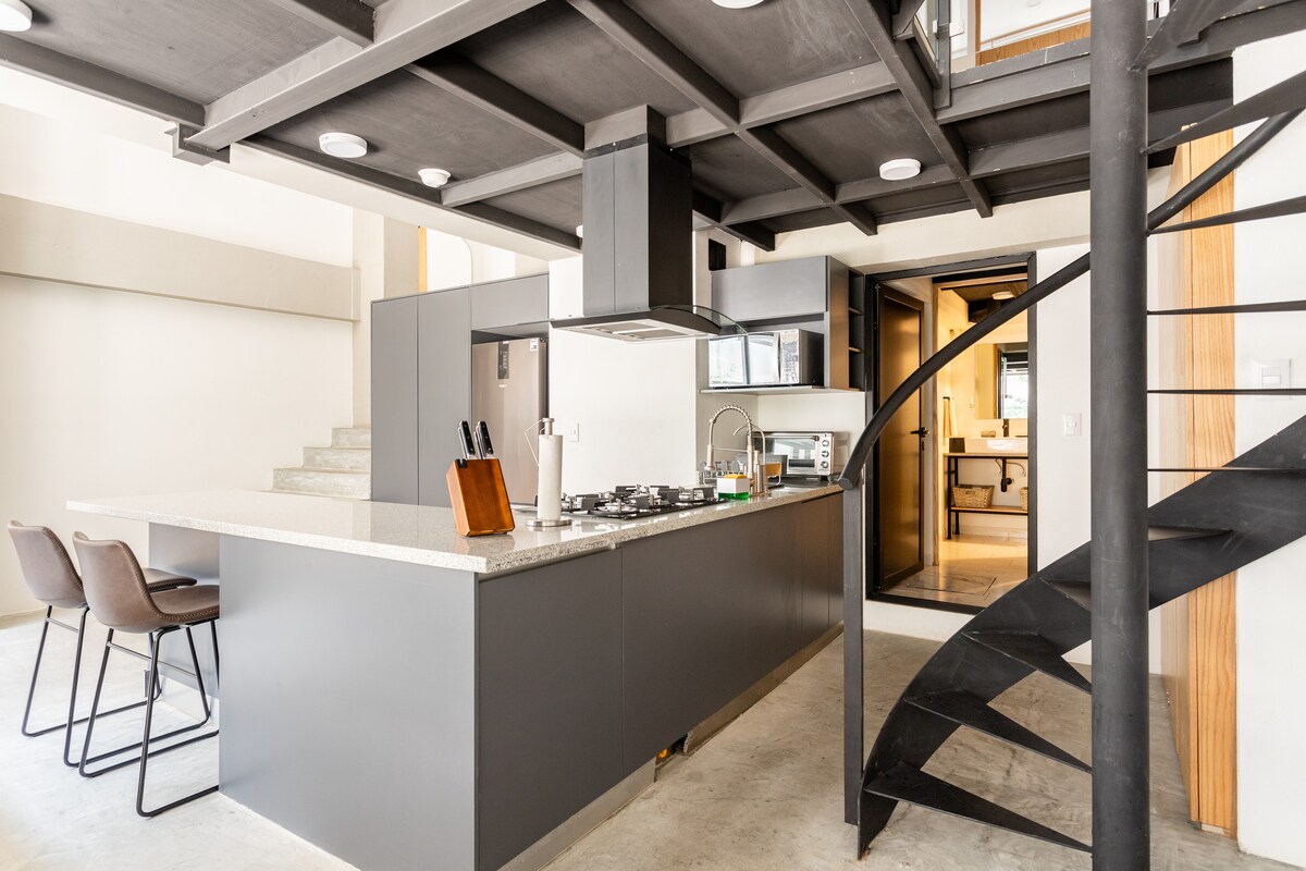 Alami Mexico City dari loteng bergaya ini di Colonia Juarez yang bergaya. Terletak sempurna, dalam jarak berjalan kaki dari Roma Norte, Condesa, Zona Rosa, Polanco, dan Reforma, ia sesuai untuk pasangan, rakan, keluarga, dan pengembara perniagaan. Nikmati dapur tingkat terbuka yang luas, ruang tamu, ruang makan dan patio besar. Dengan keselamatan 24/7, internet berkelajuan tinggi, dan akses mudah kepada pengangkutan awam, meneroka bandar ini sangat mudah. Jadikan ini rumah anda yang selesa dan mudah di Mexico City yang meriah!